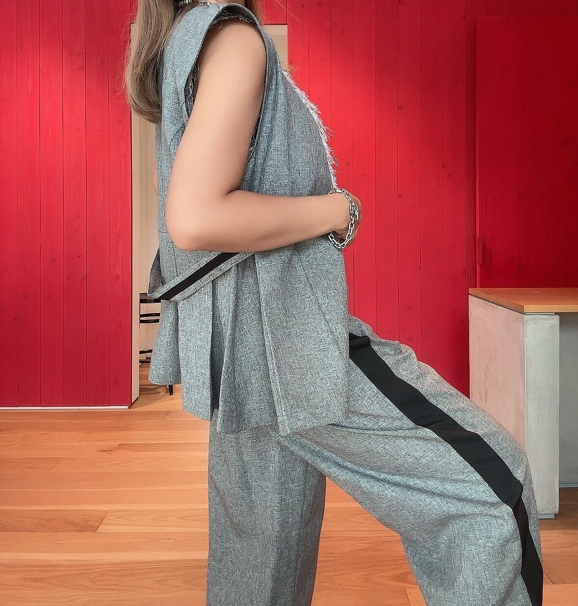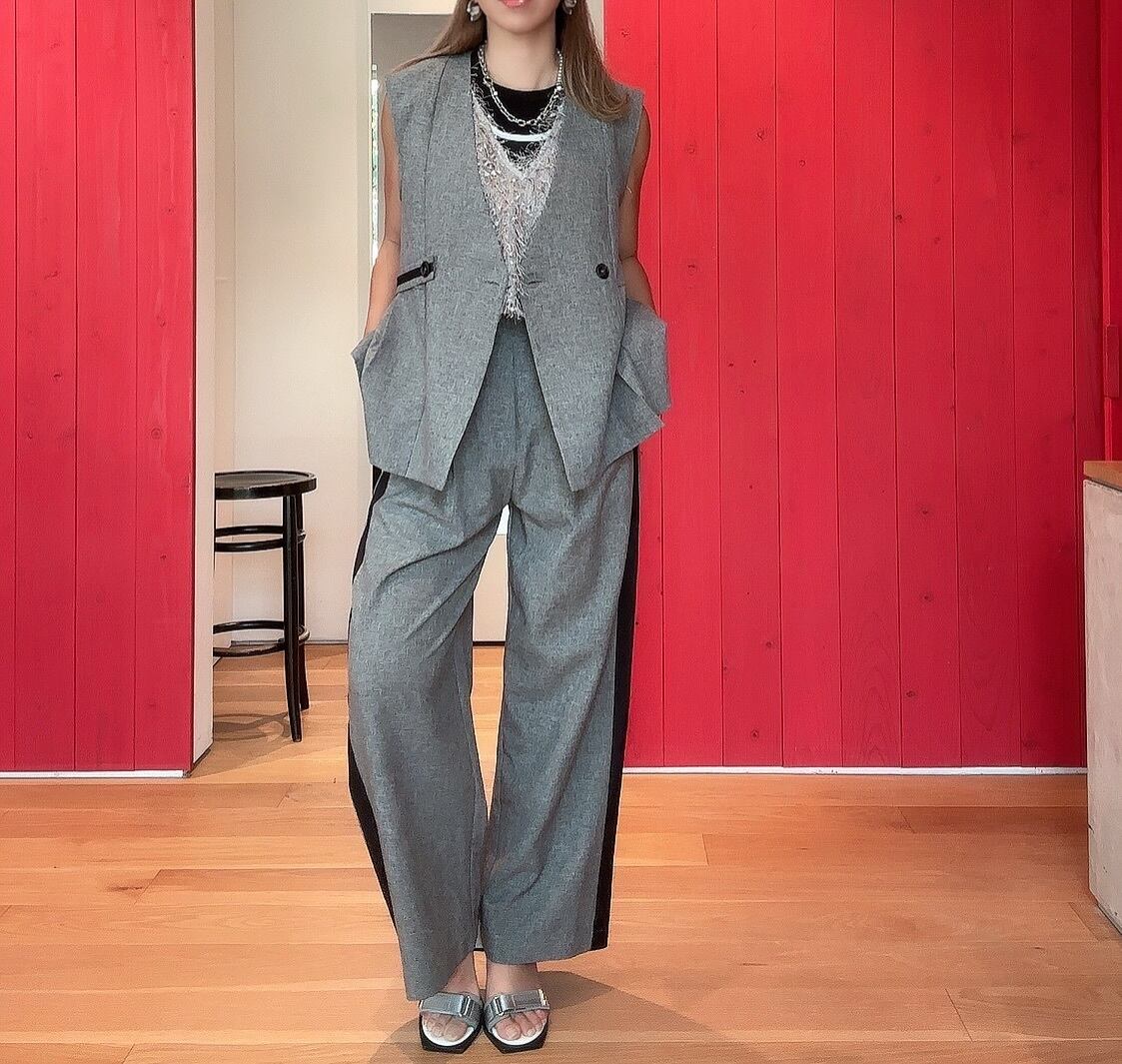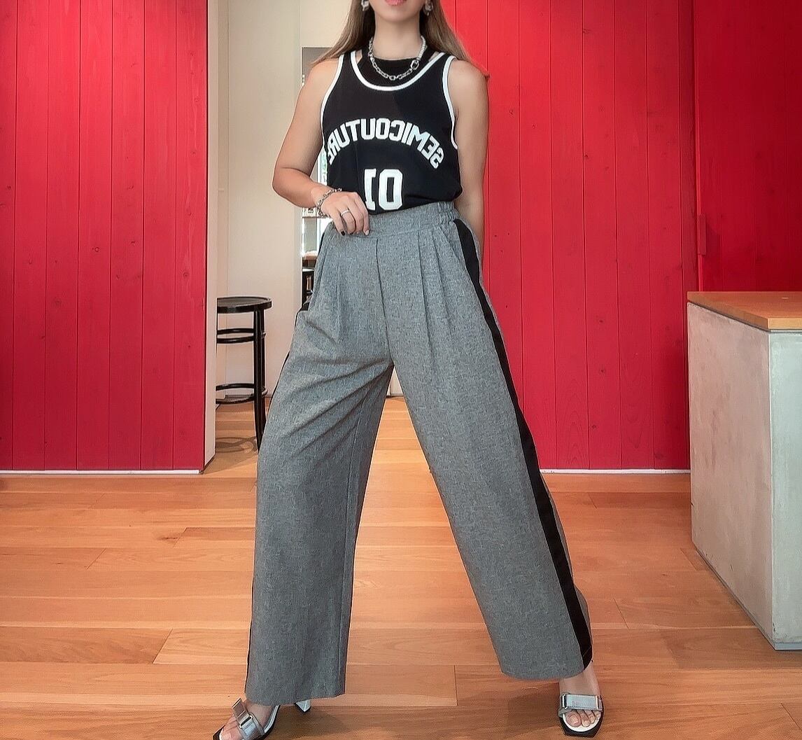 【再入荷】サイドラインテープ2タックワイドパンツ