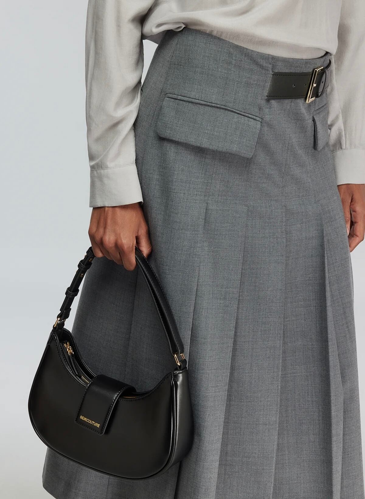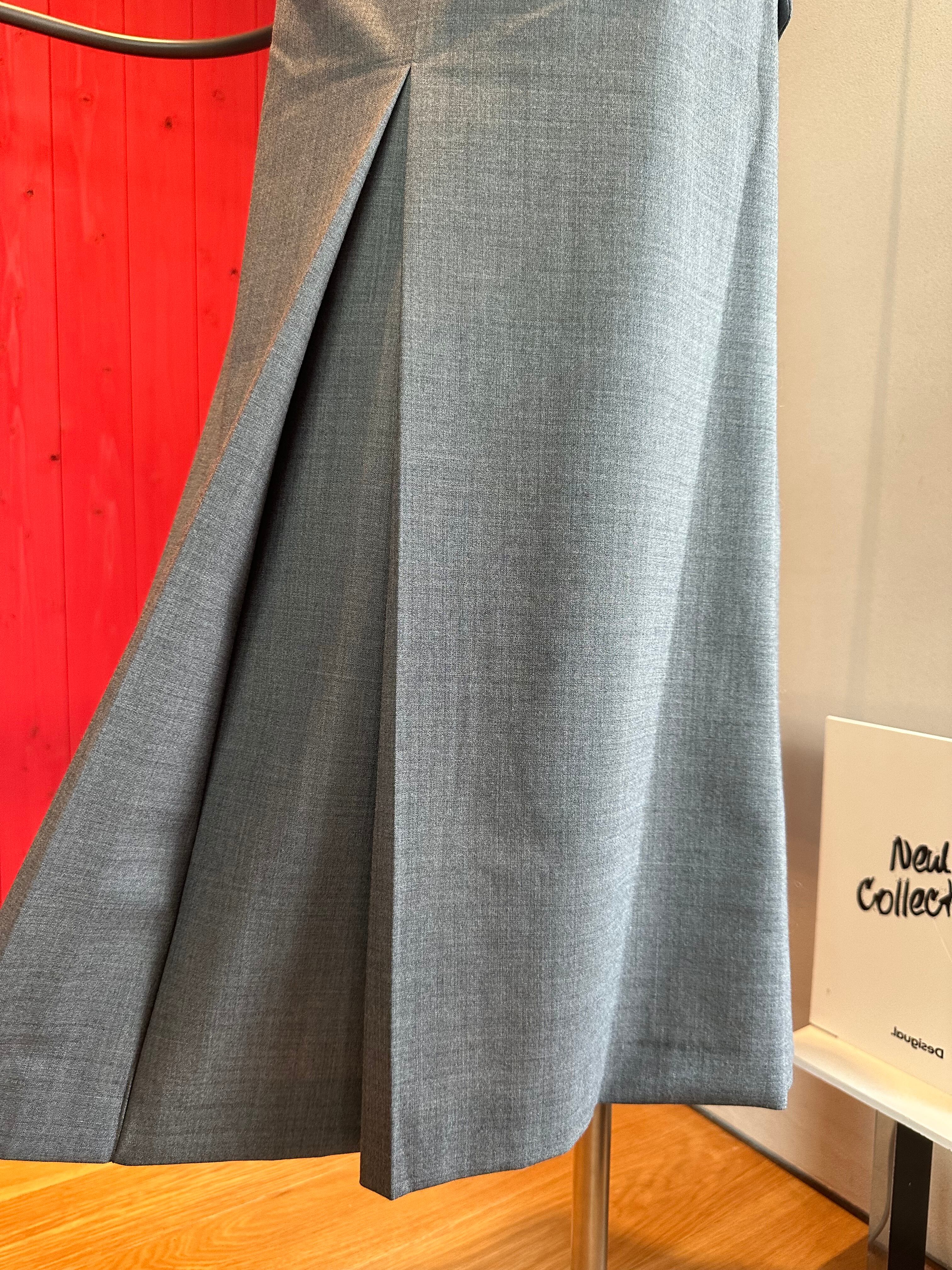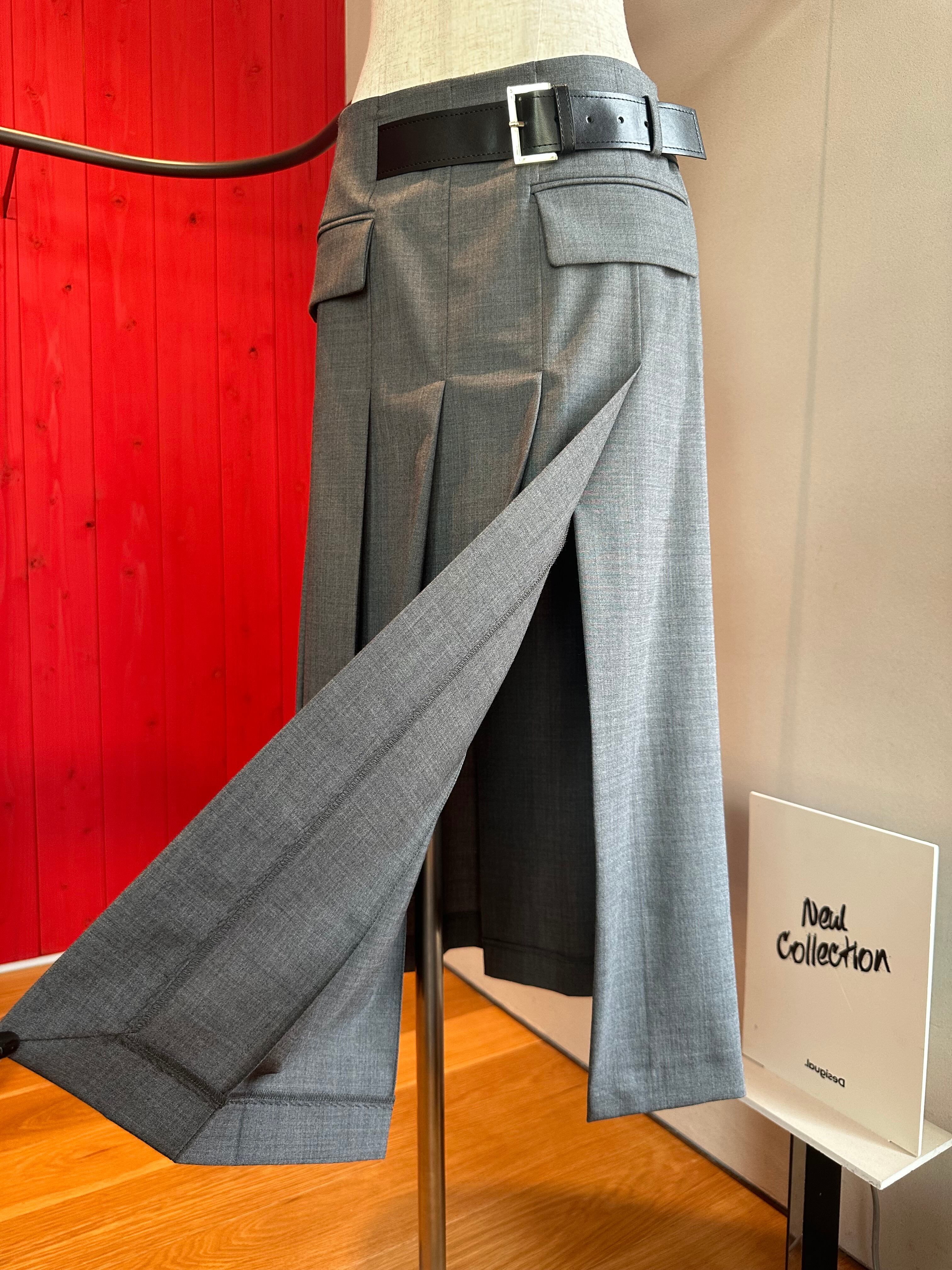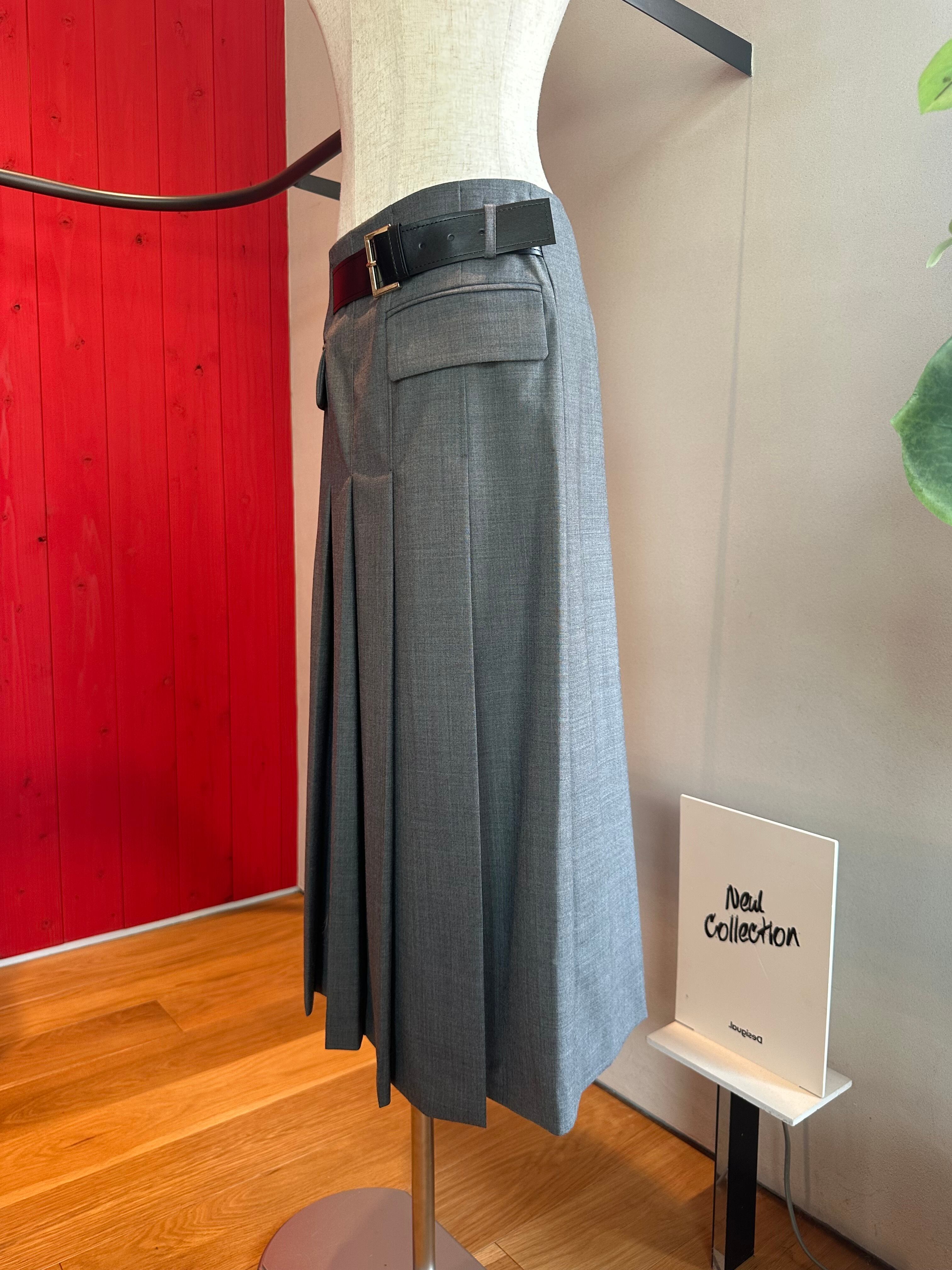 ベルテッドデザインフラップポケットサイドスリットボックスプリーツミディスカート