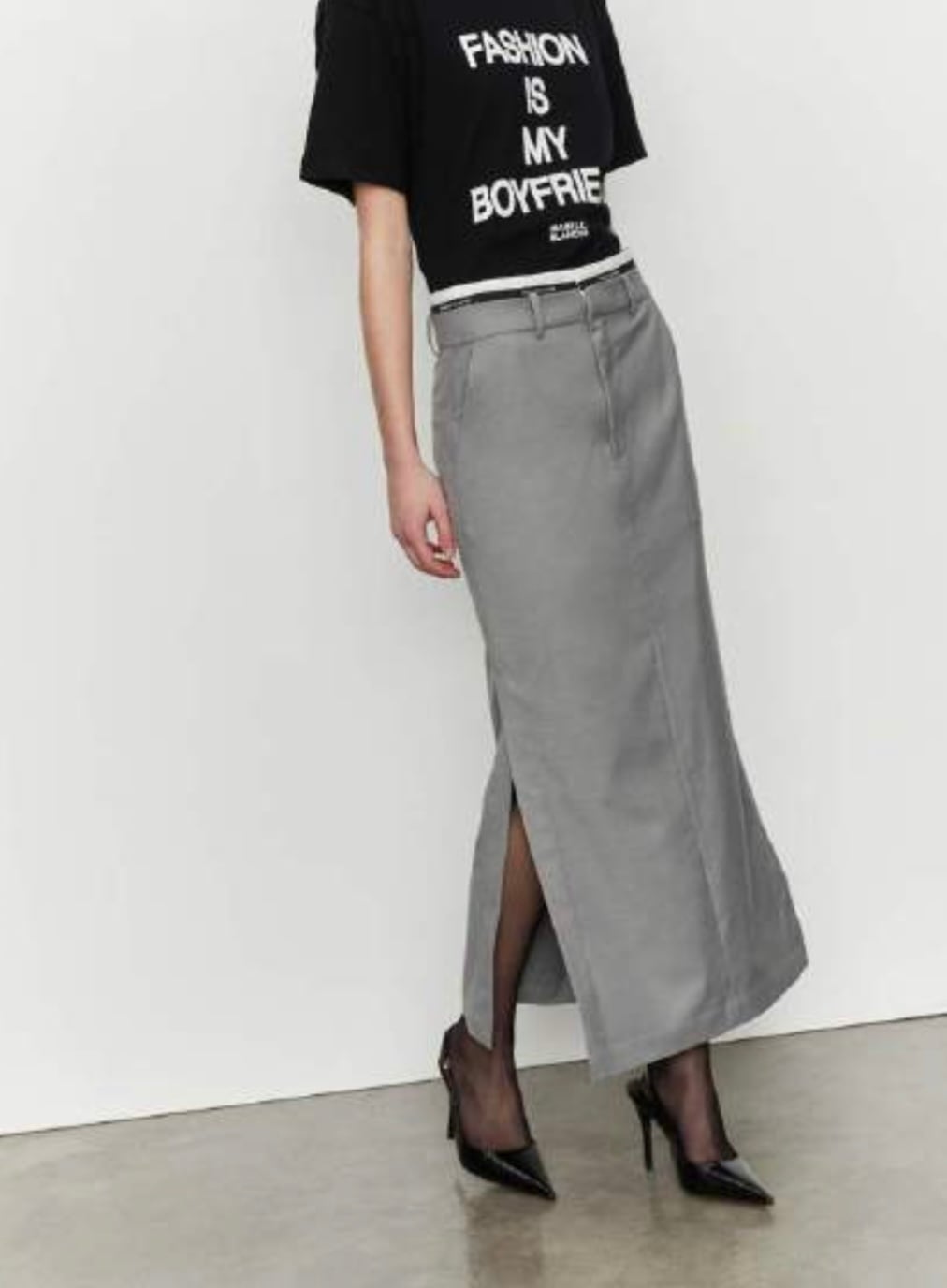 ウエストブランドロゴデザインサイドスリットロングスカート