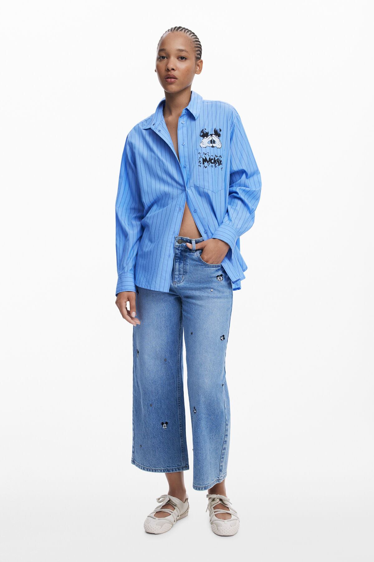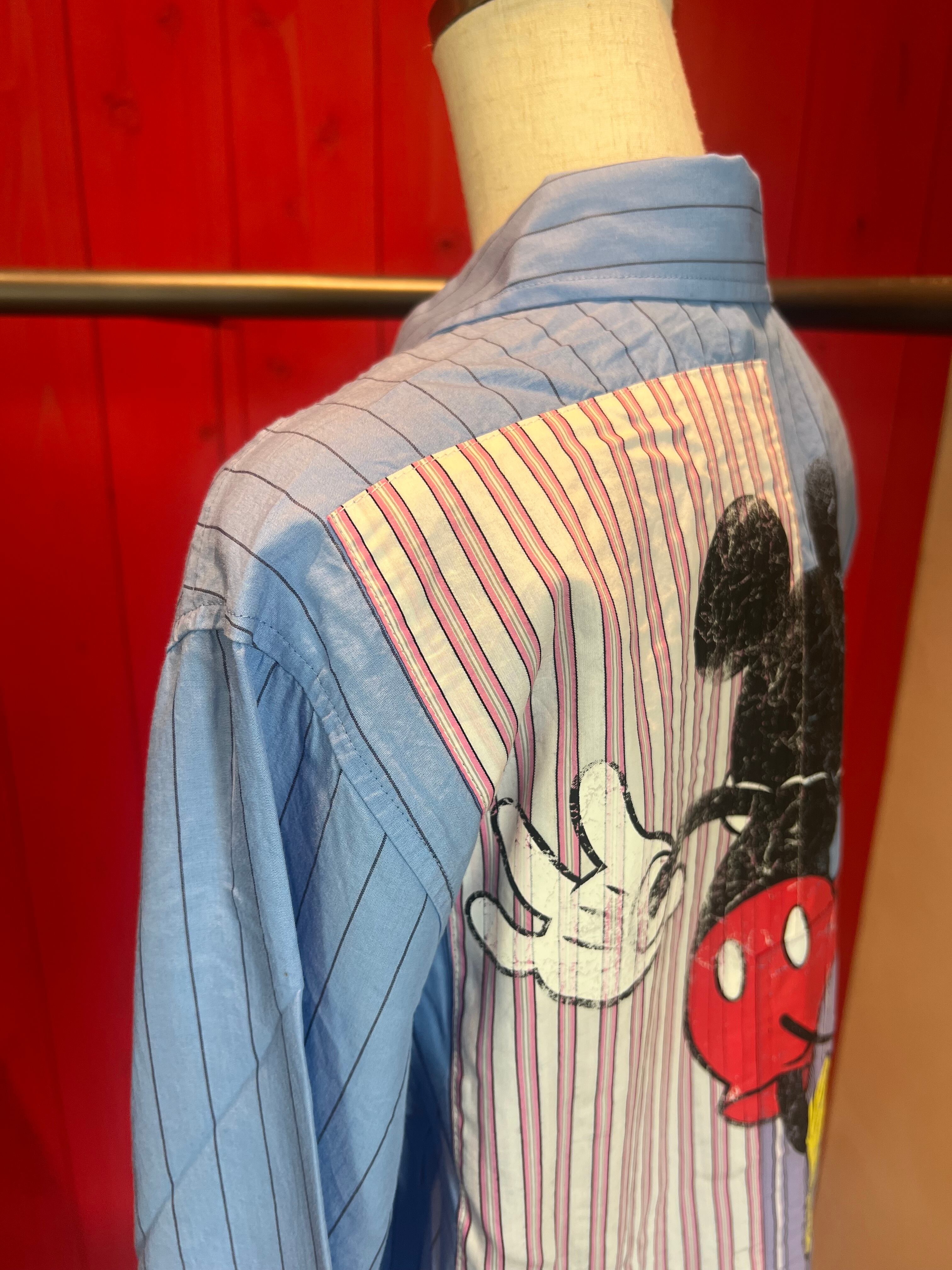 ミッキープリントストライプリヨセルシャツ