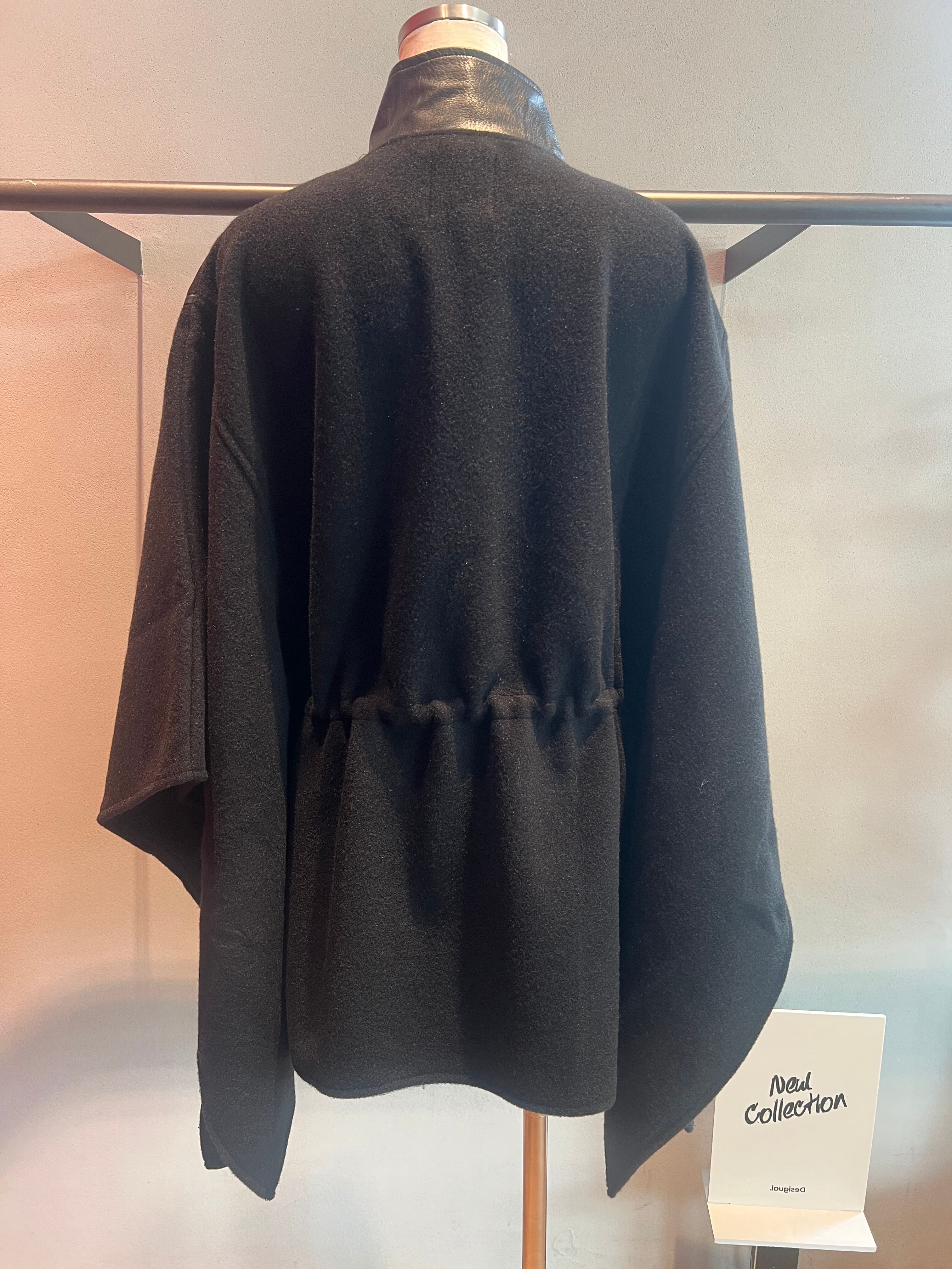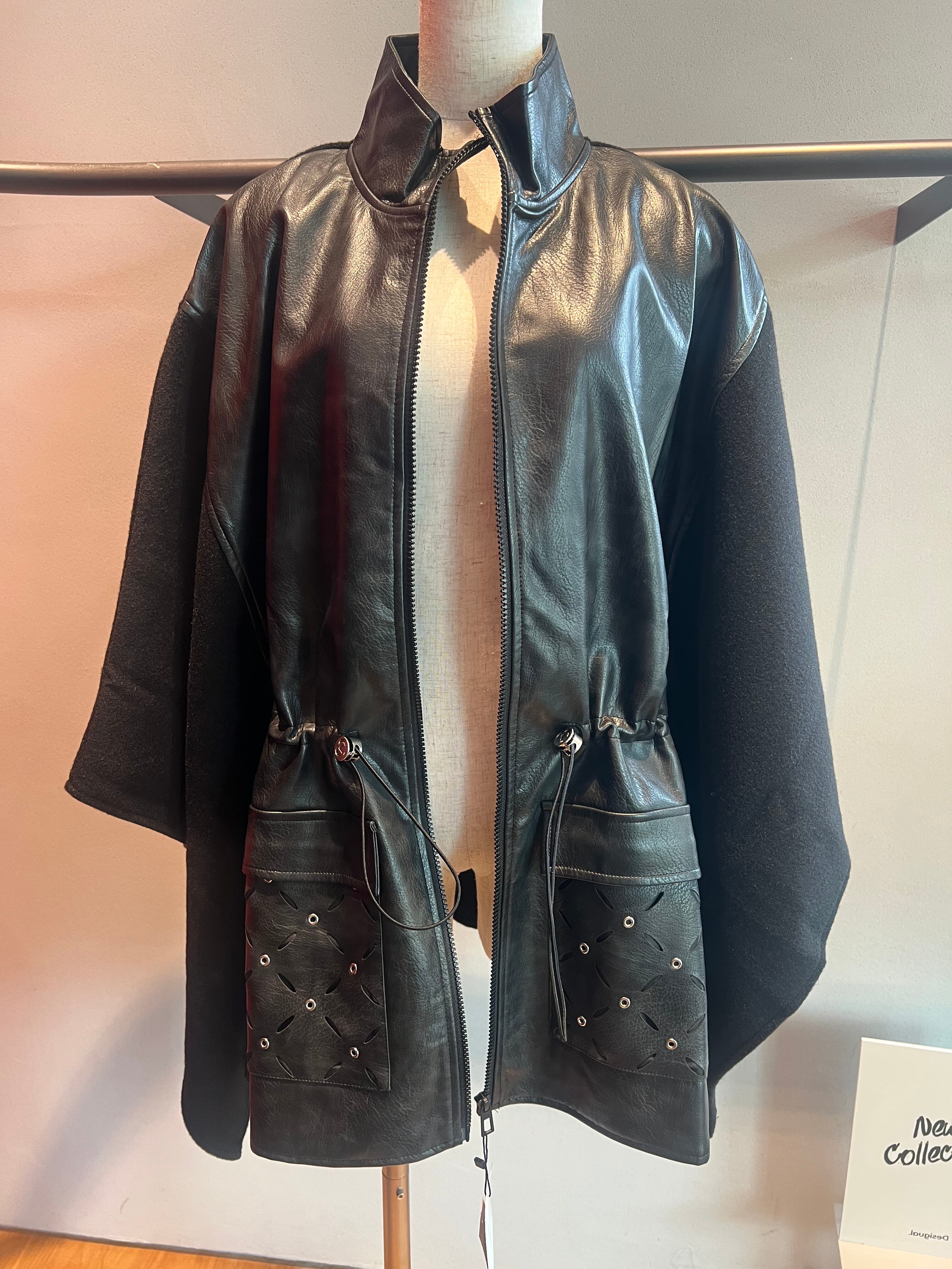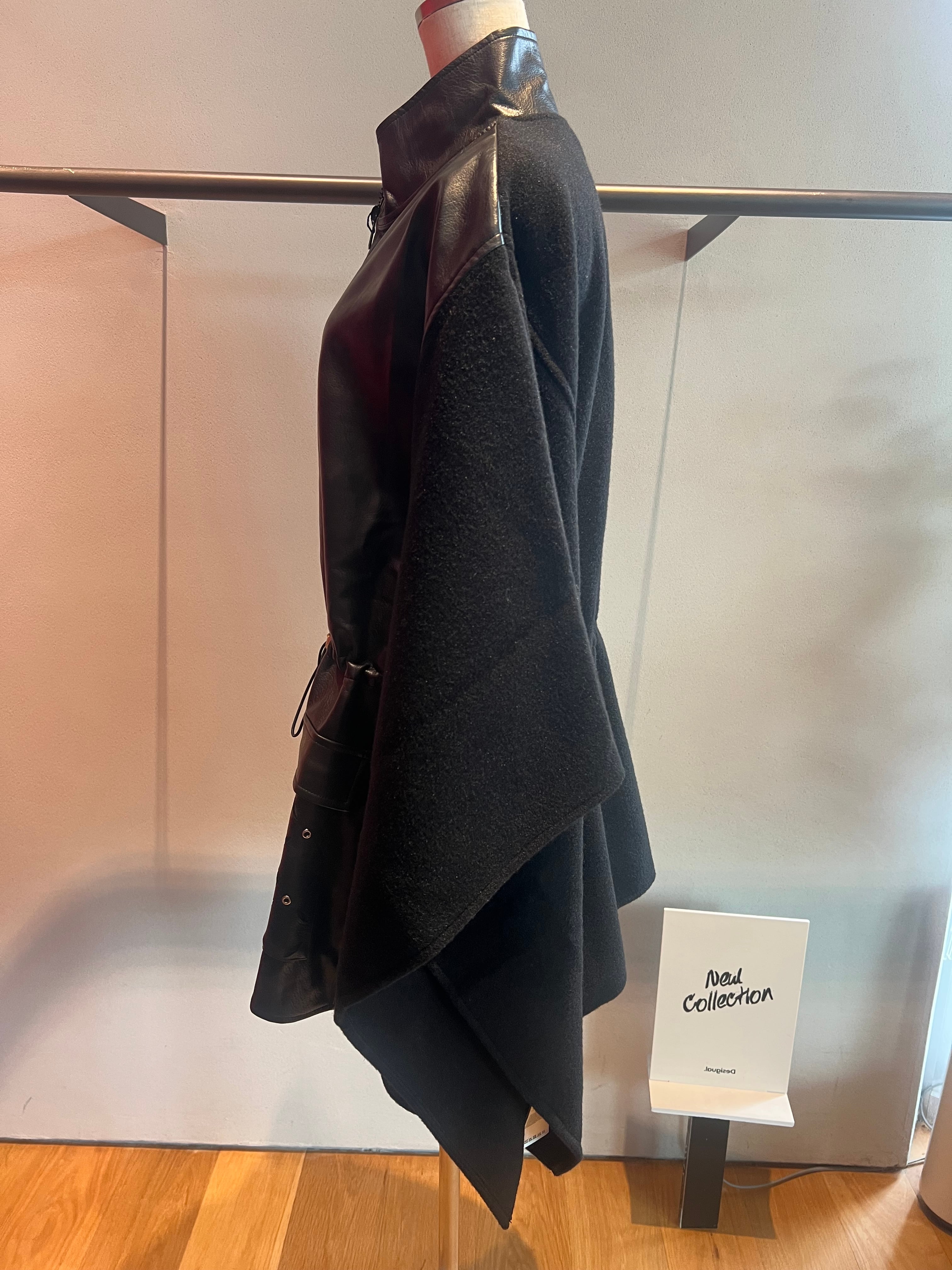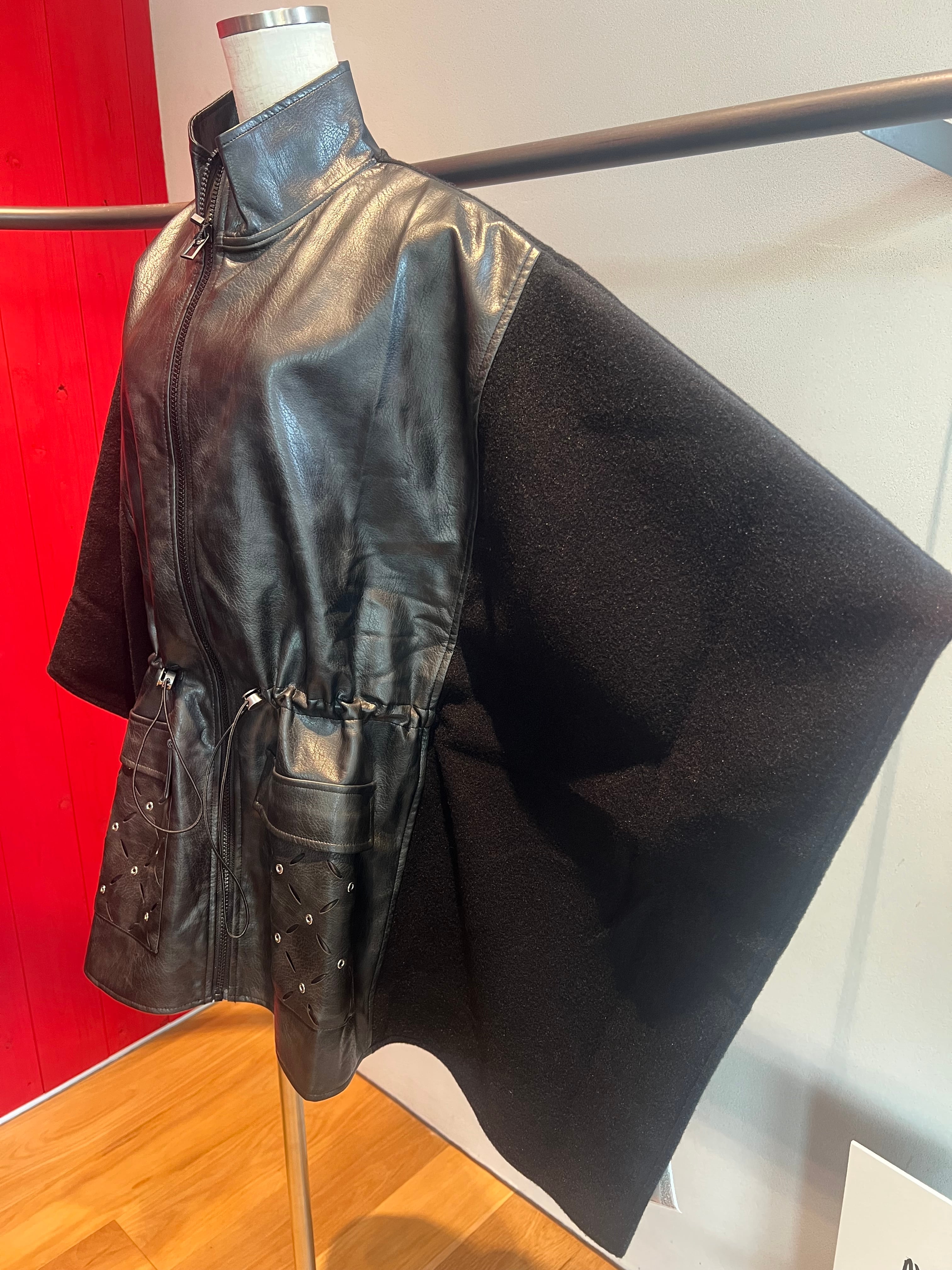 フェイクレザー×フリーススタンド切替ZIPポンチョ