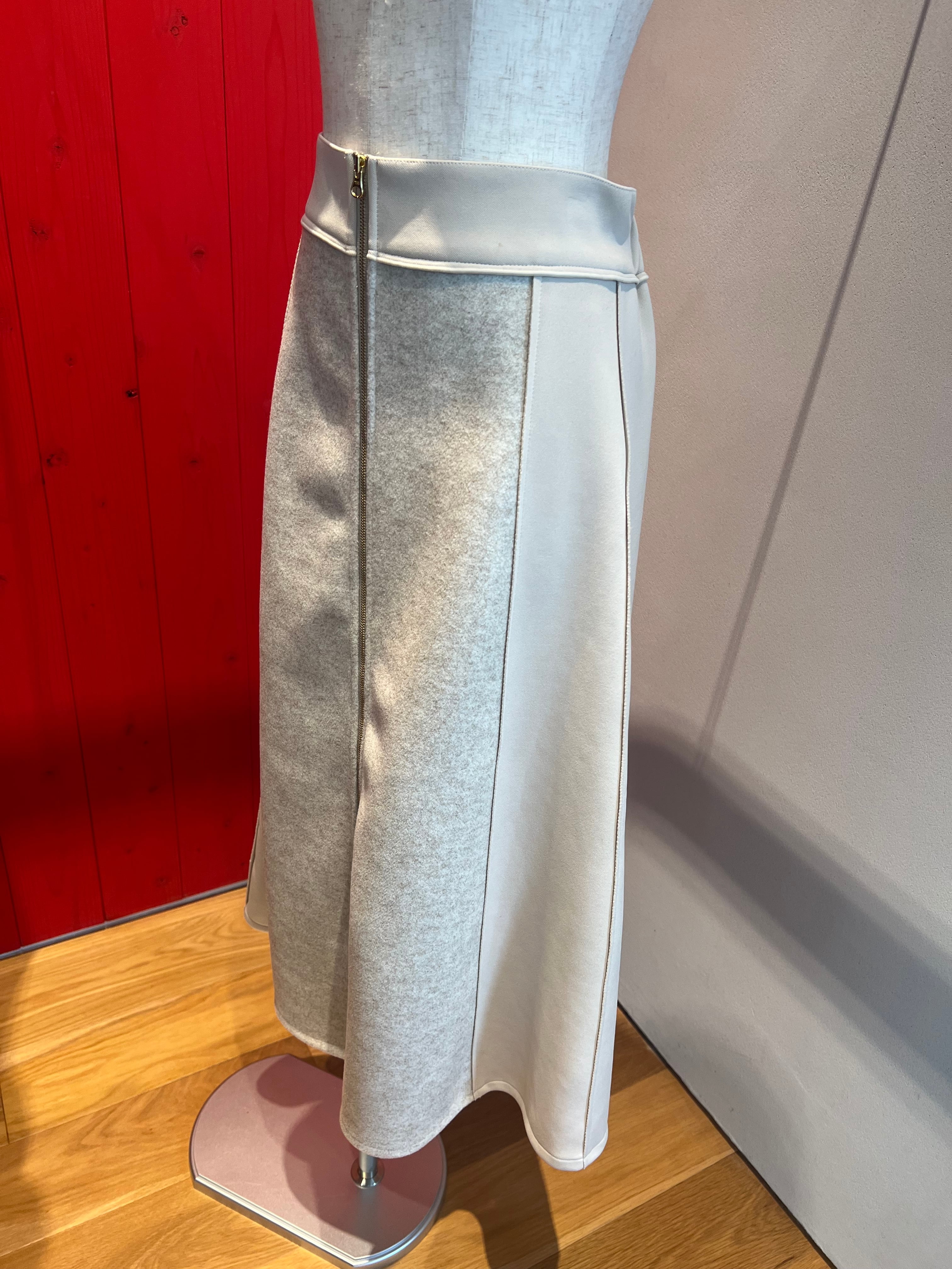 ポンチ×フラノ切替フロントZIPセミロングスカート