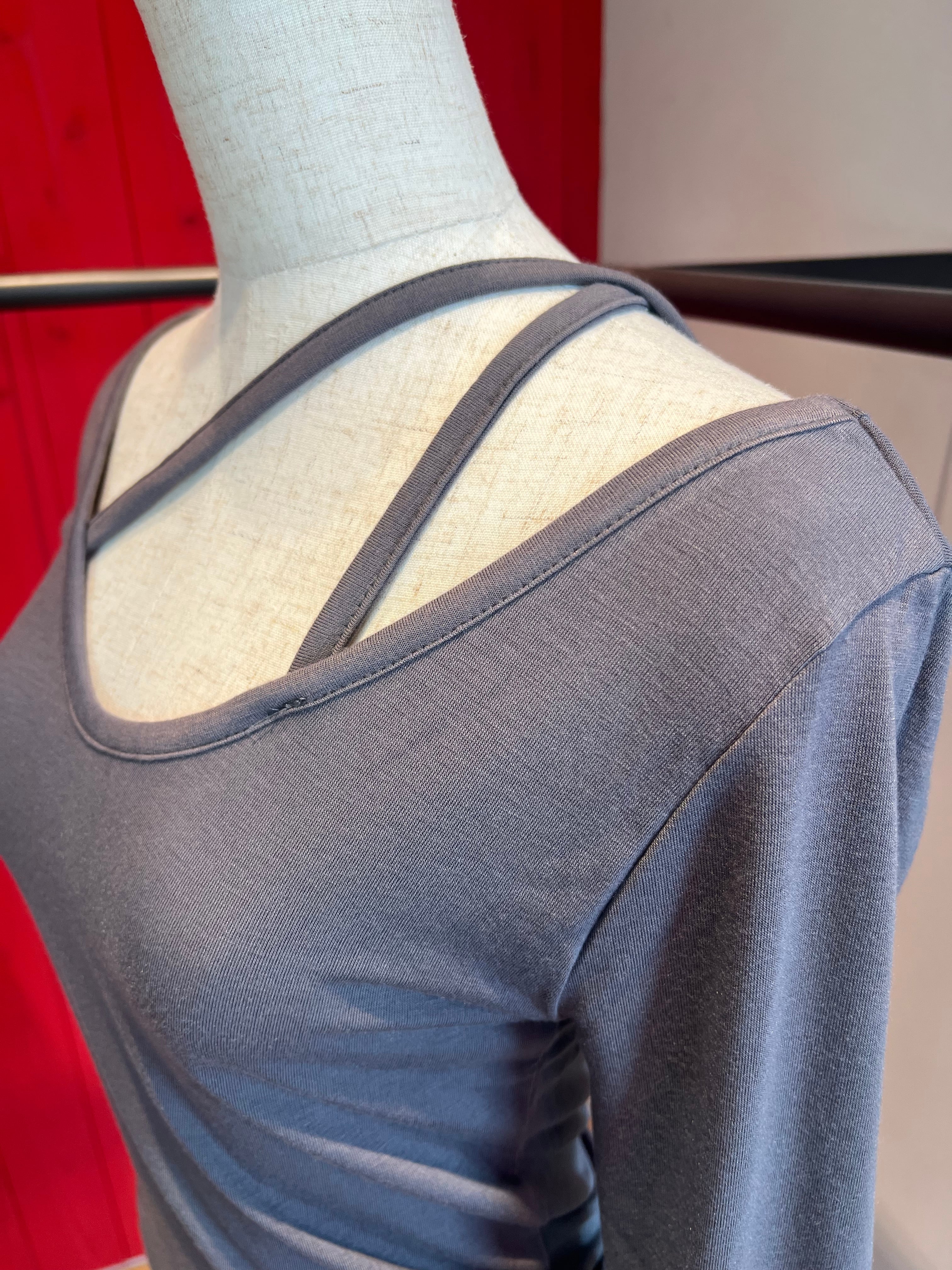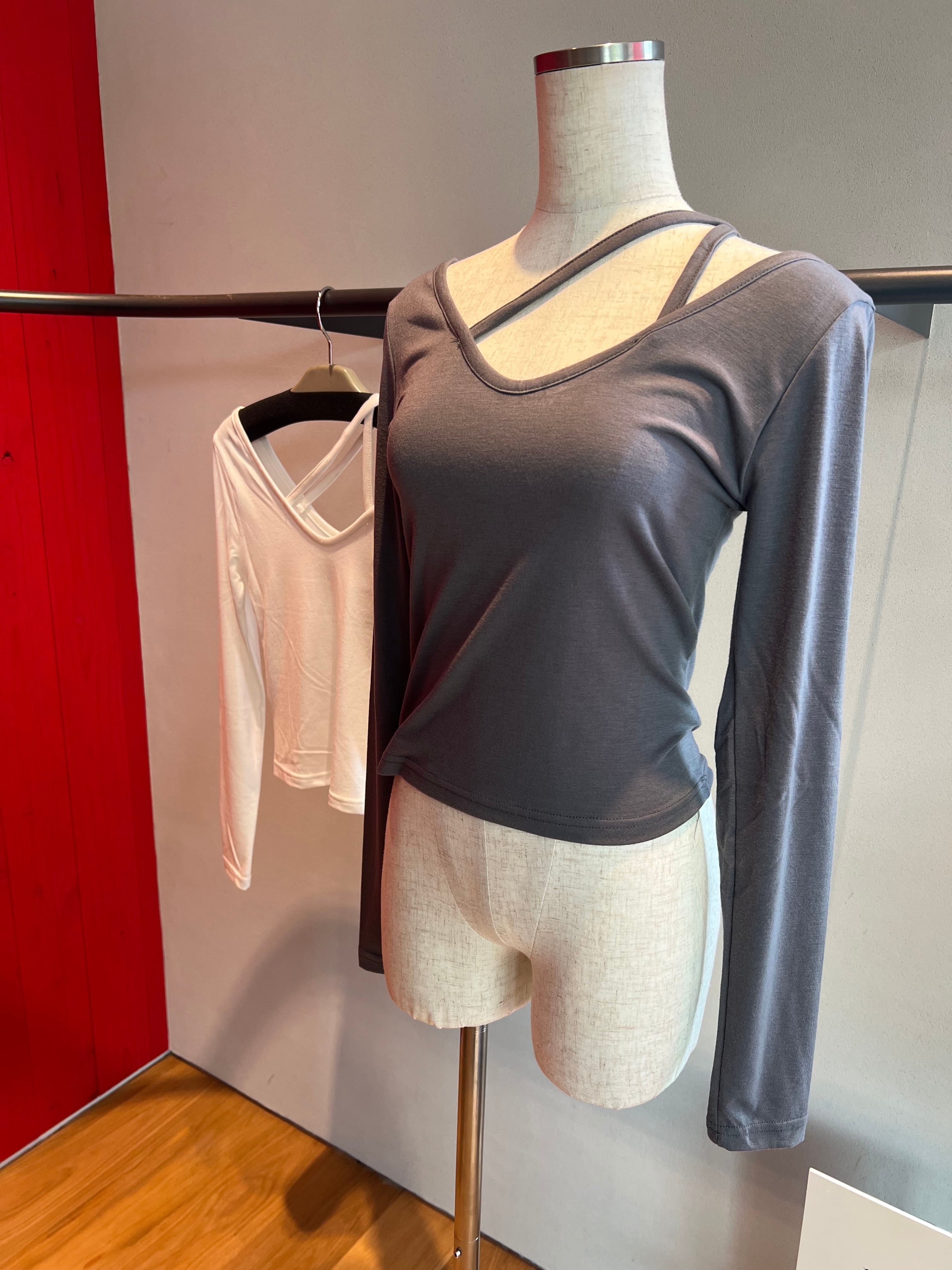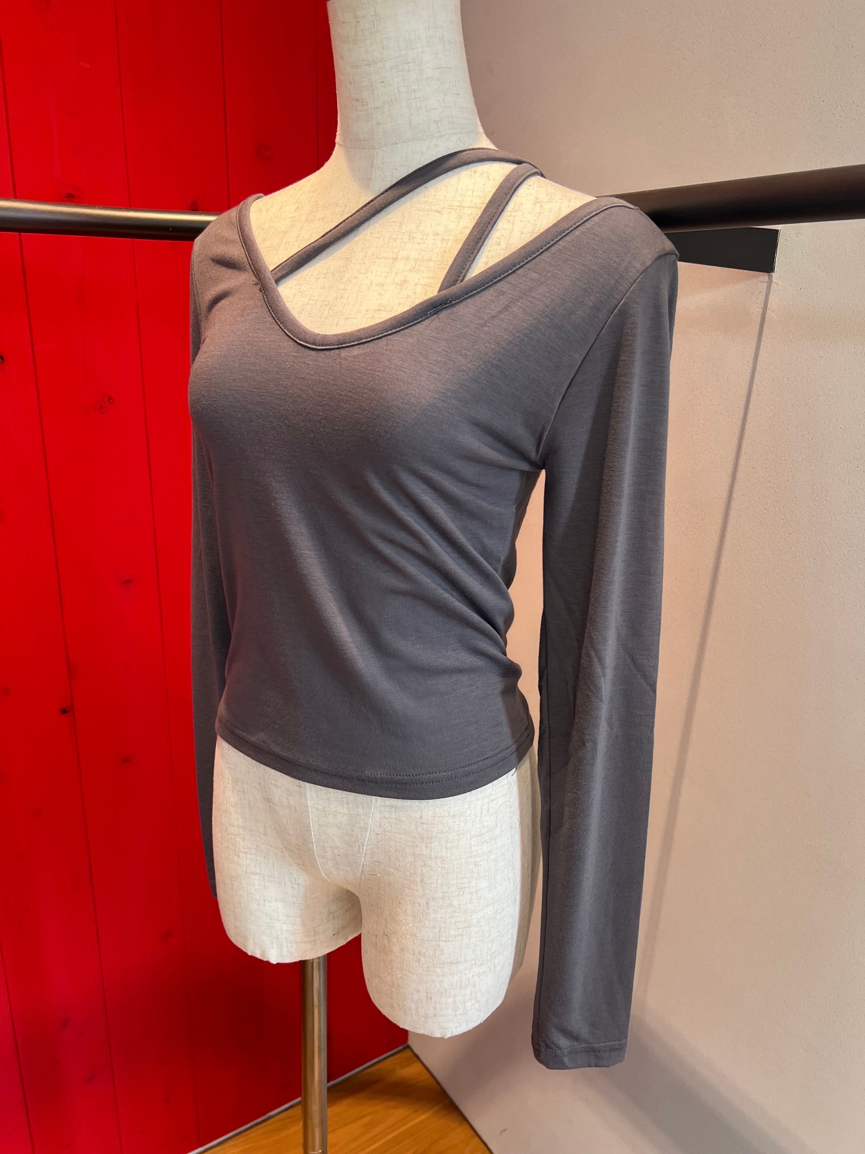 アシンメトリーストラップdesign長袖ロング丈Tシャツ