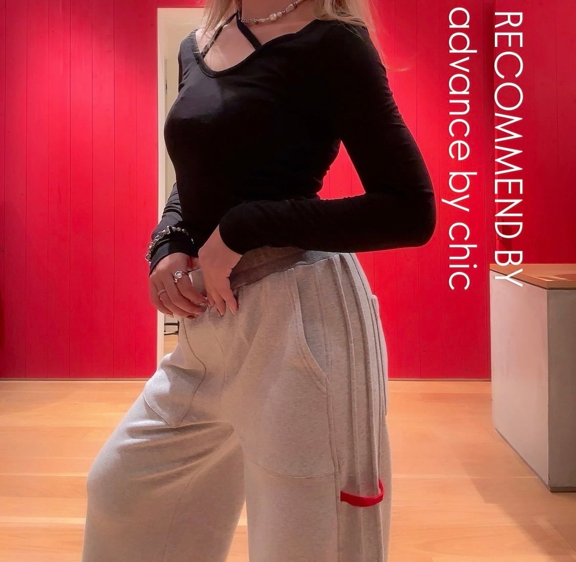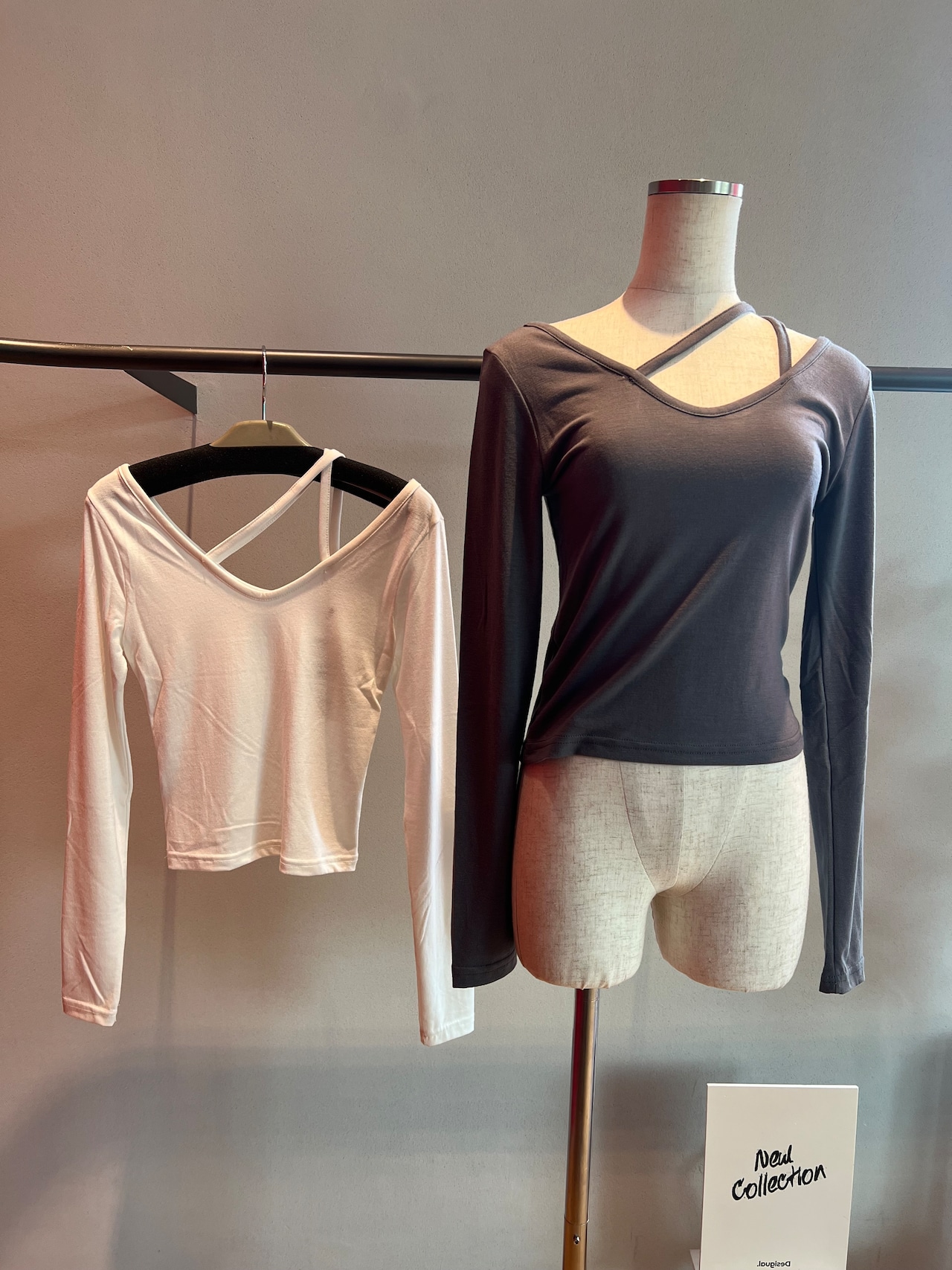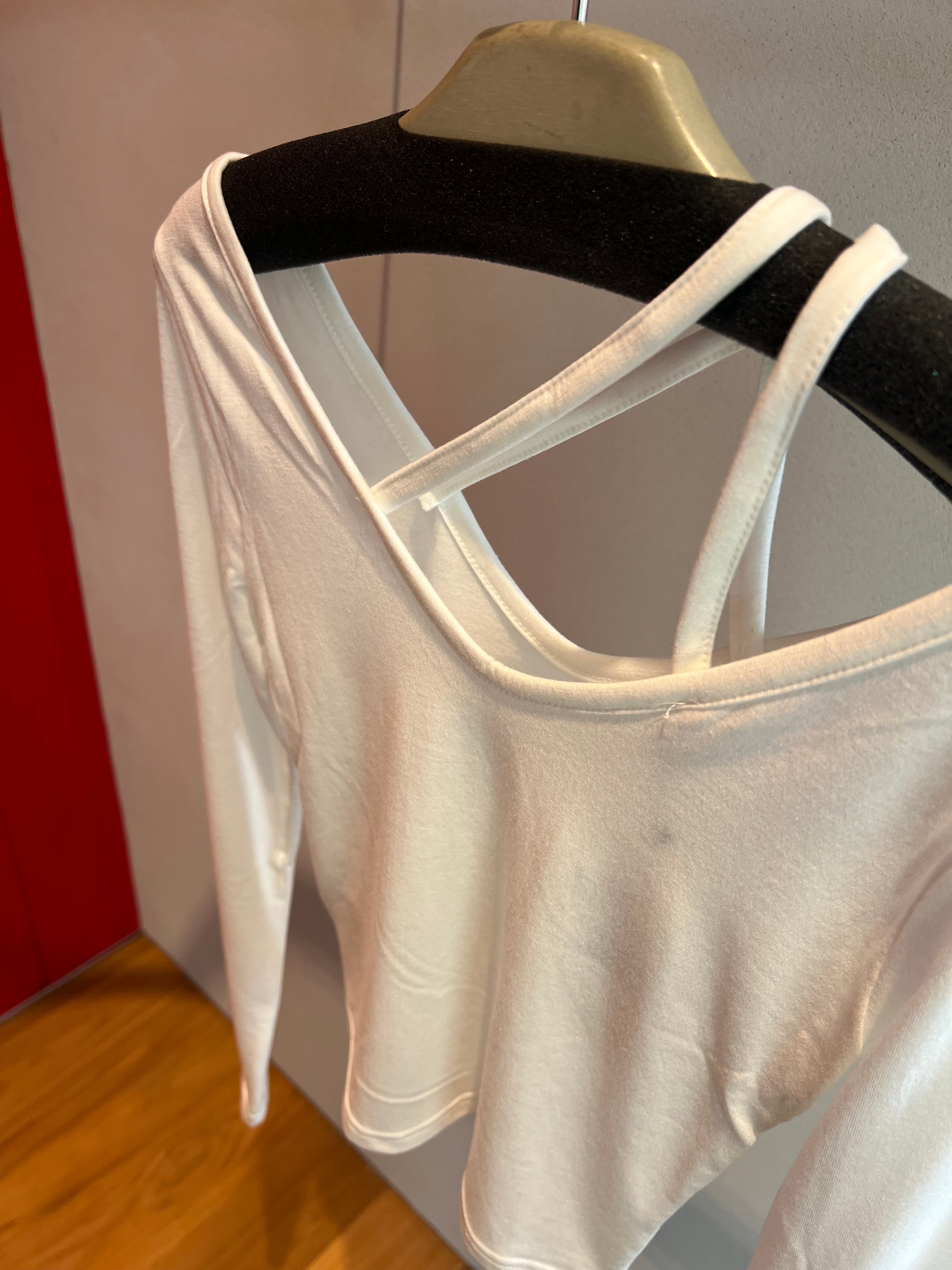 アシンメトリーストラップdesign長袖ロング丈Tシャツ