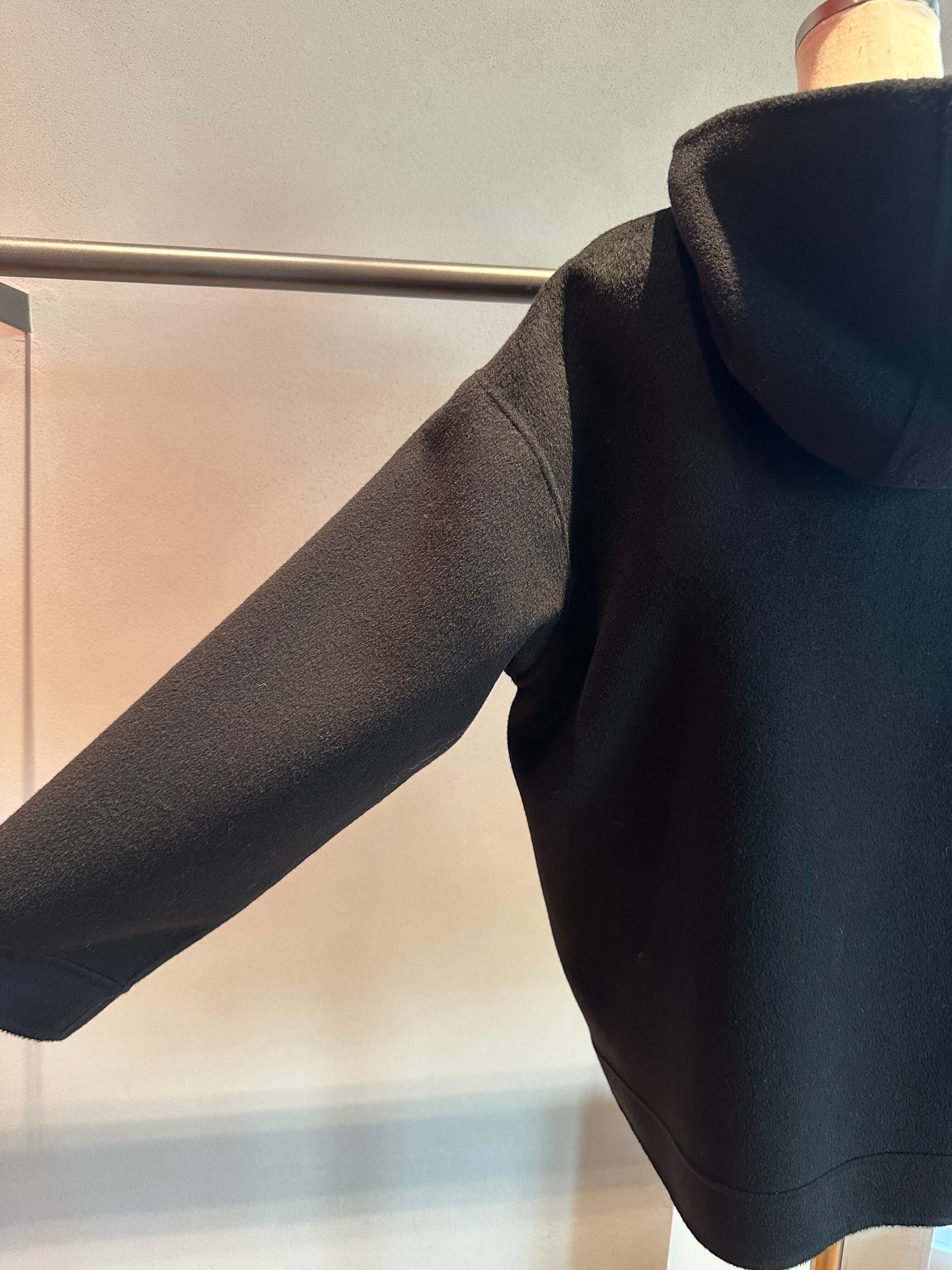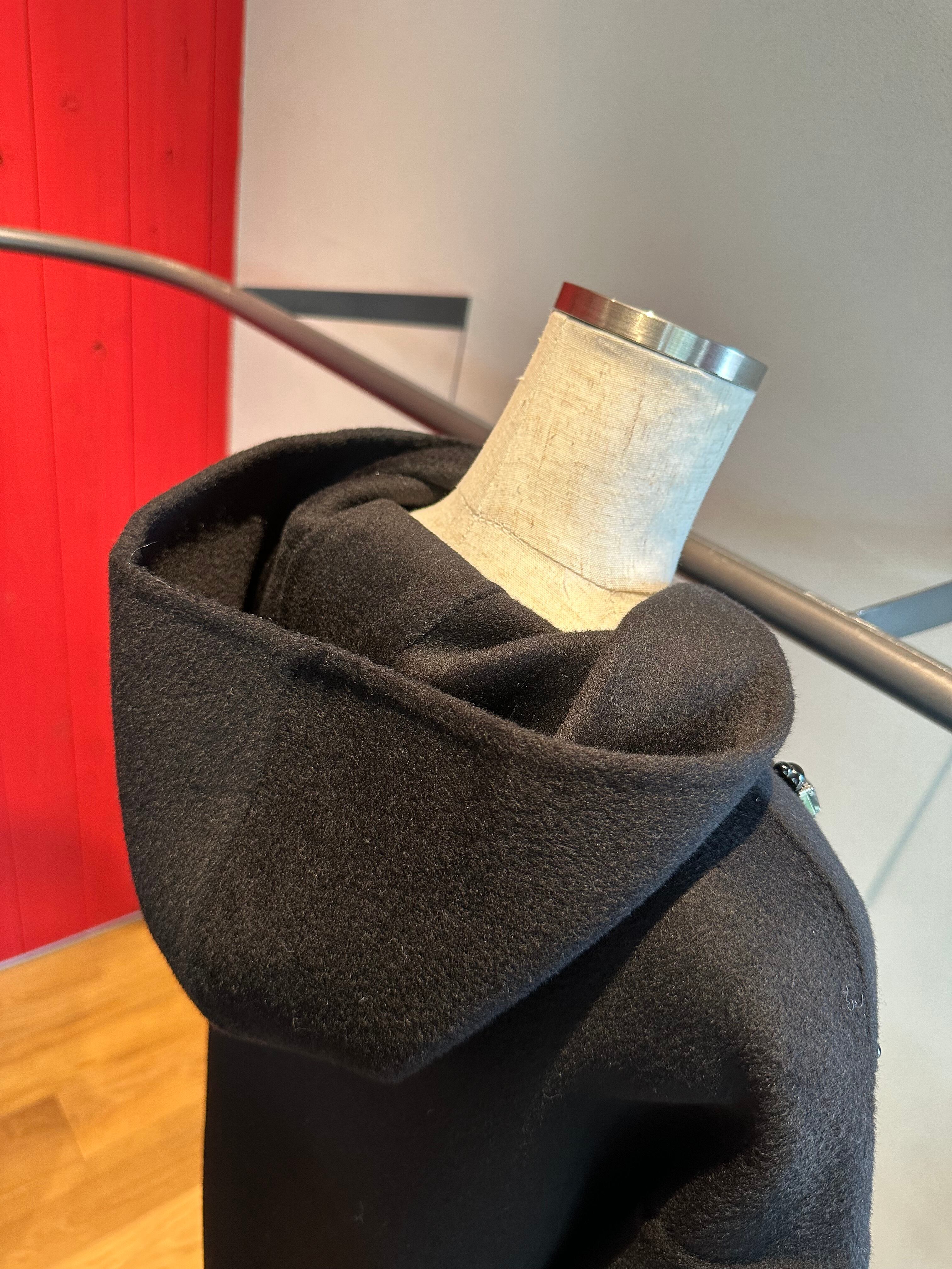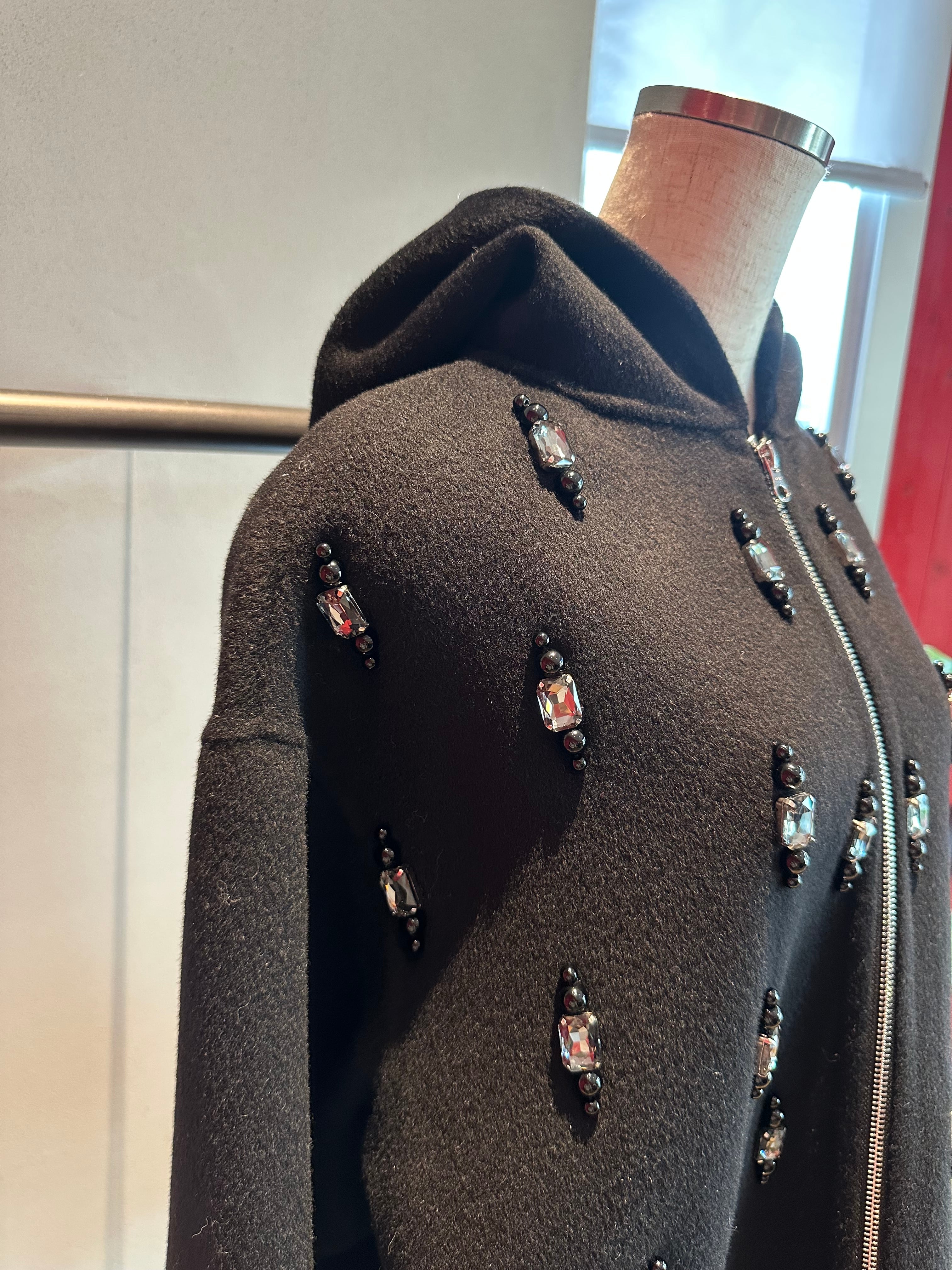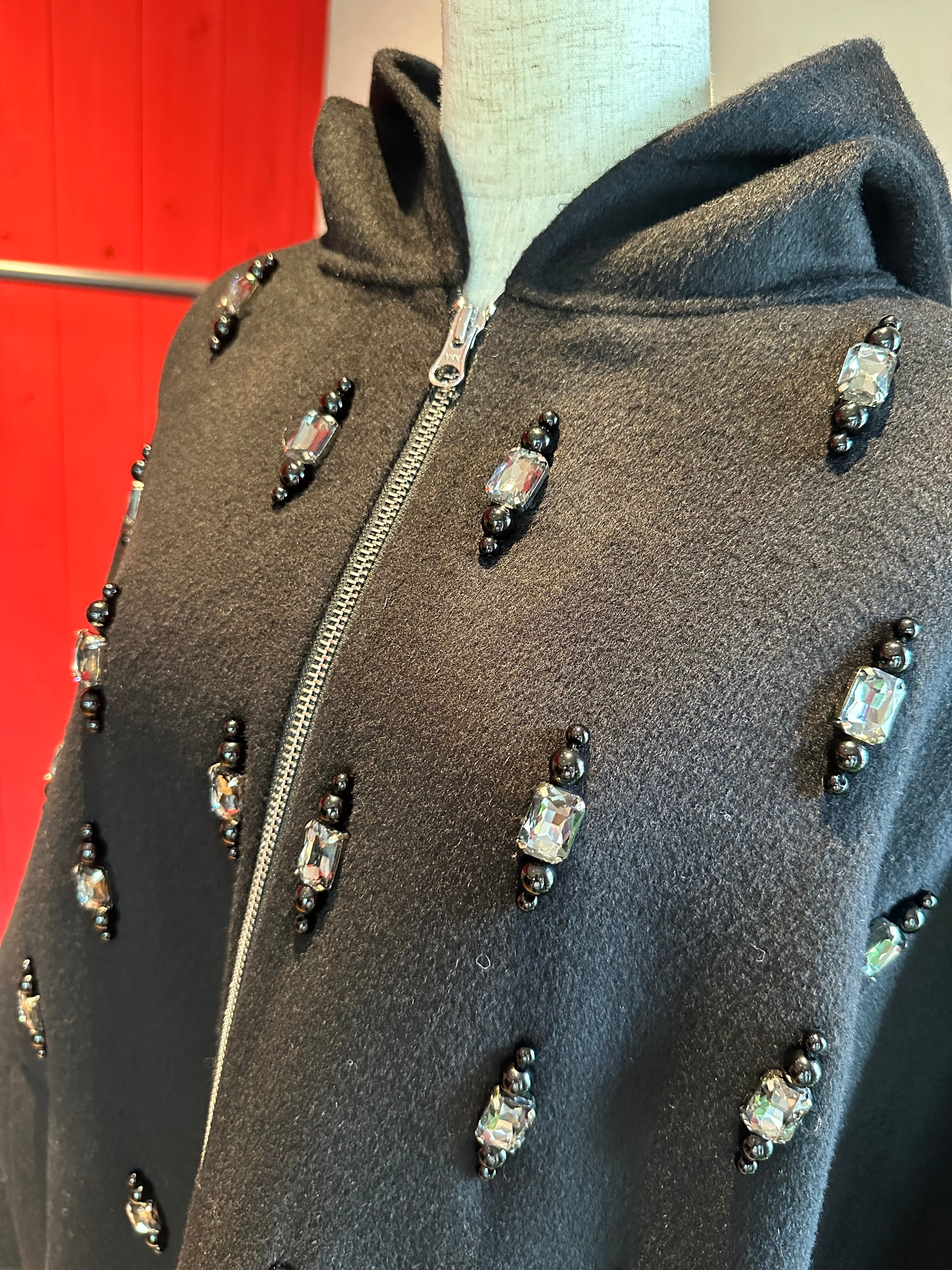 ウールフラノビジューデザインフードZIPミドルコート