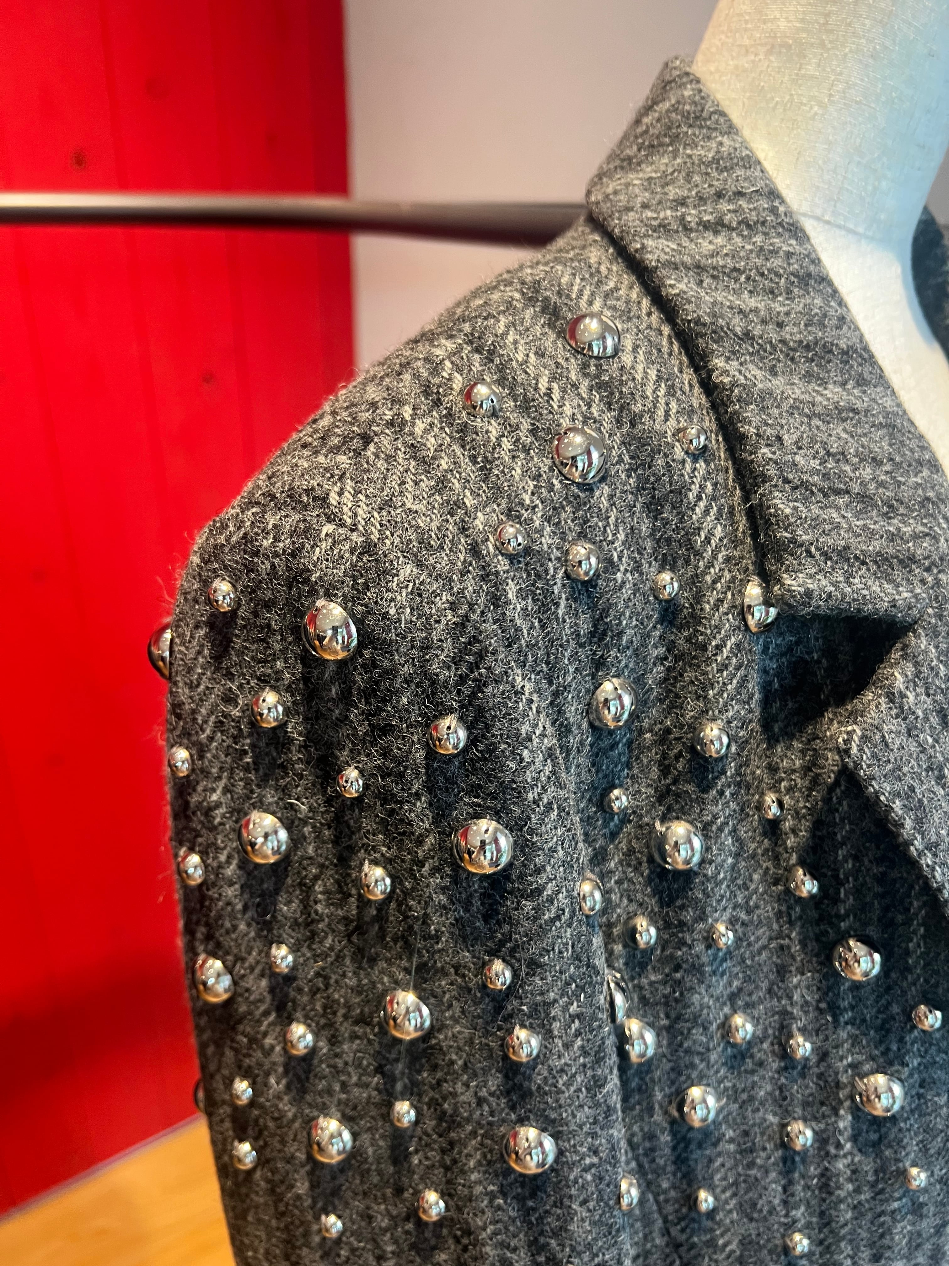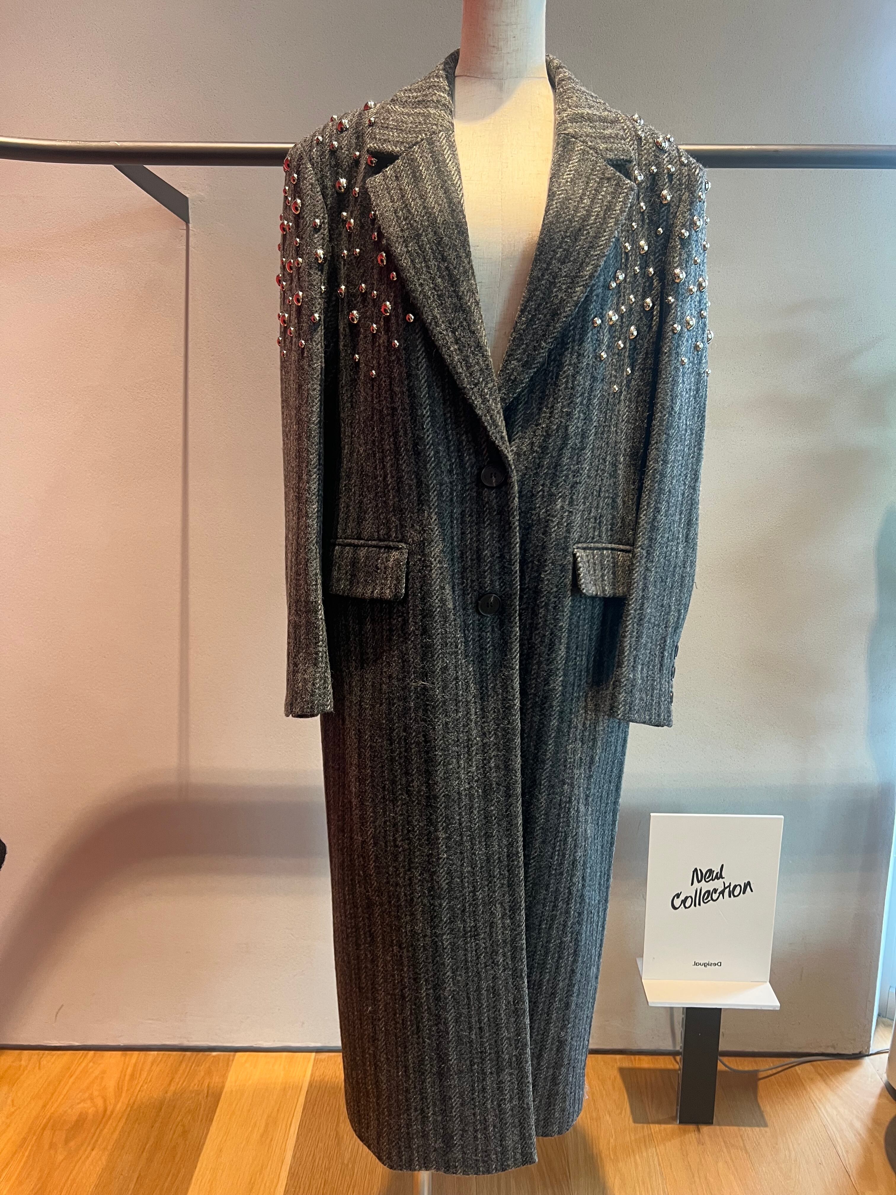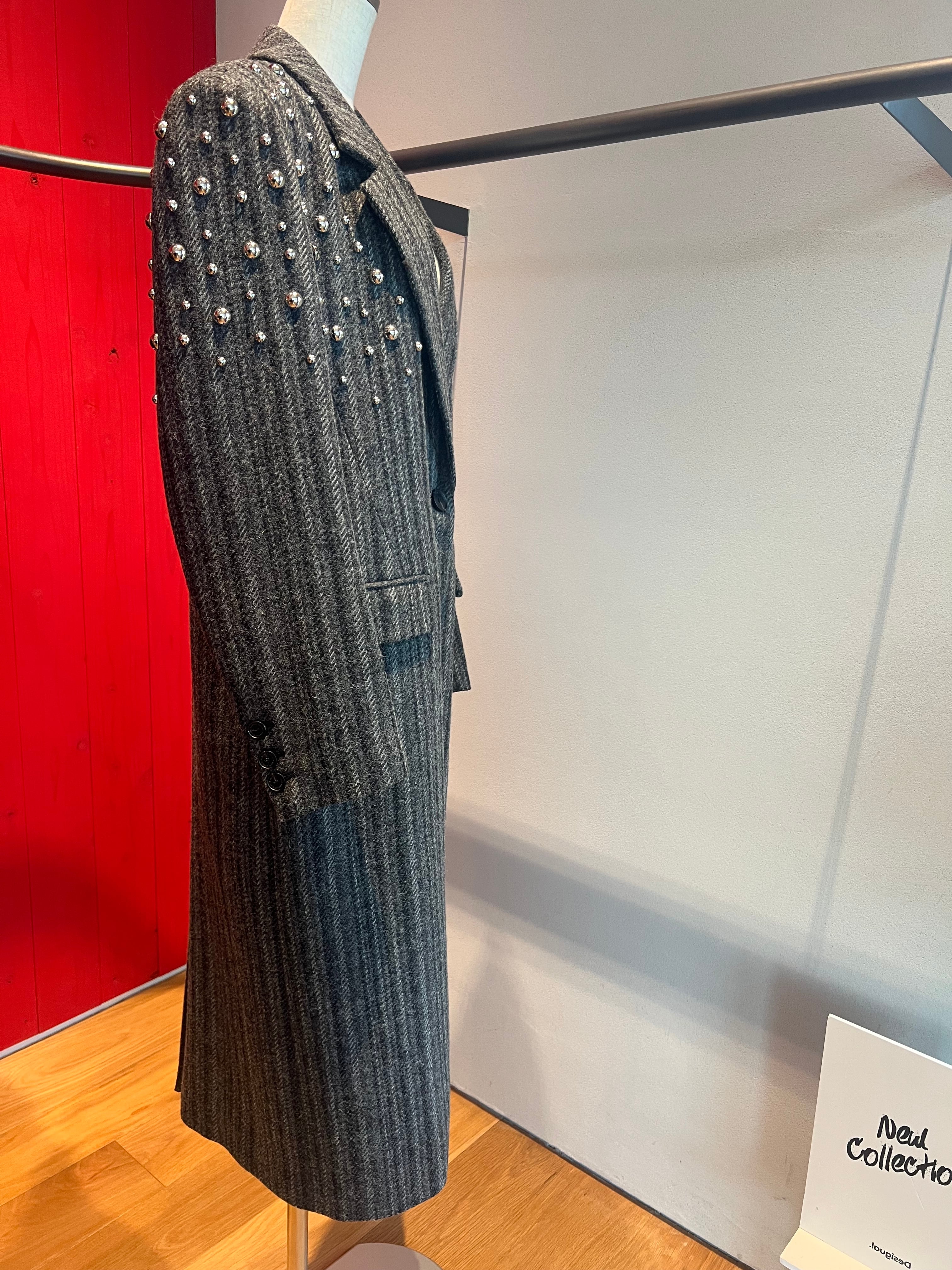 【OUTLET】スタッズdesignストライプツイードロングテーラードコート