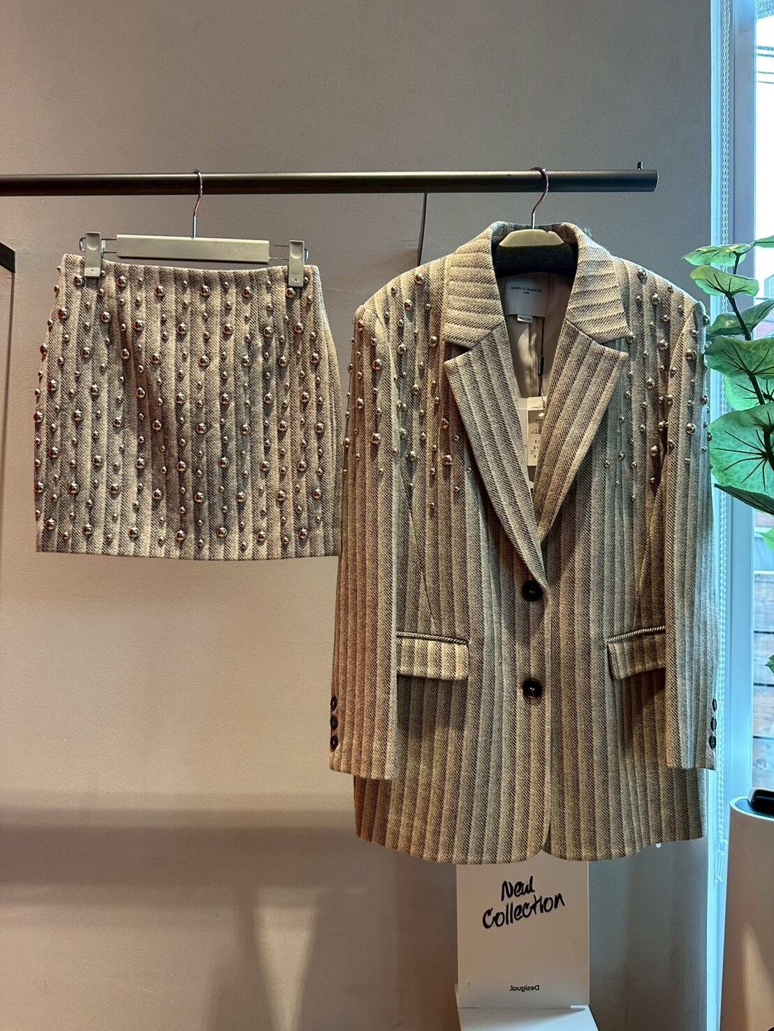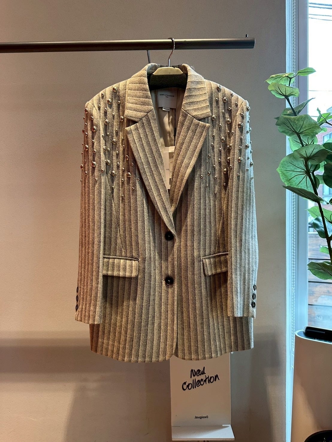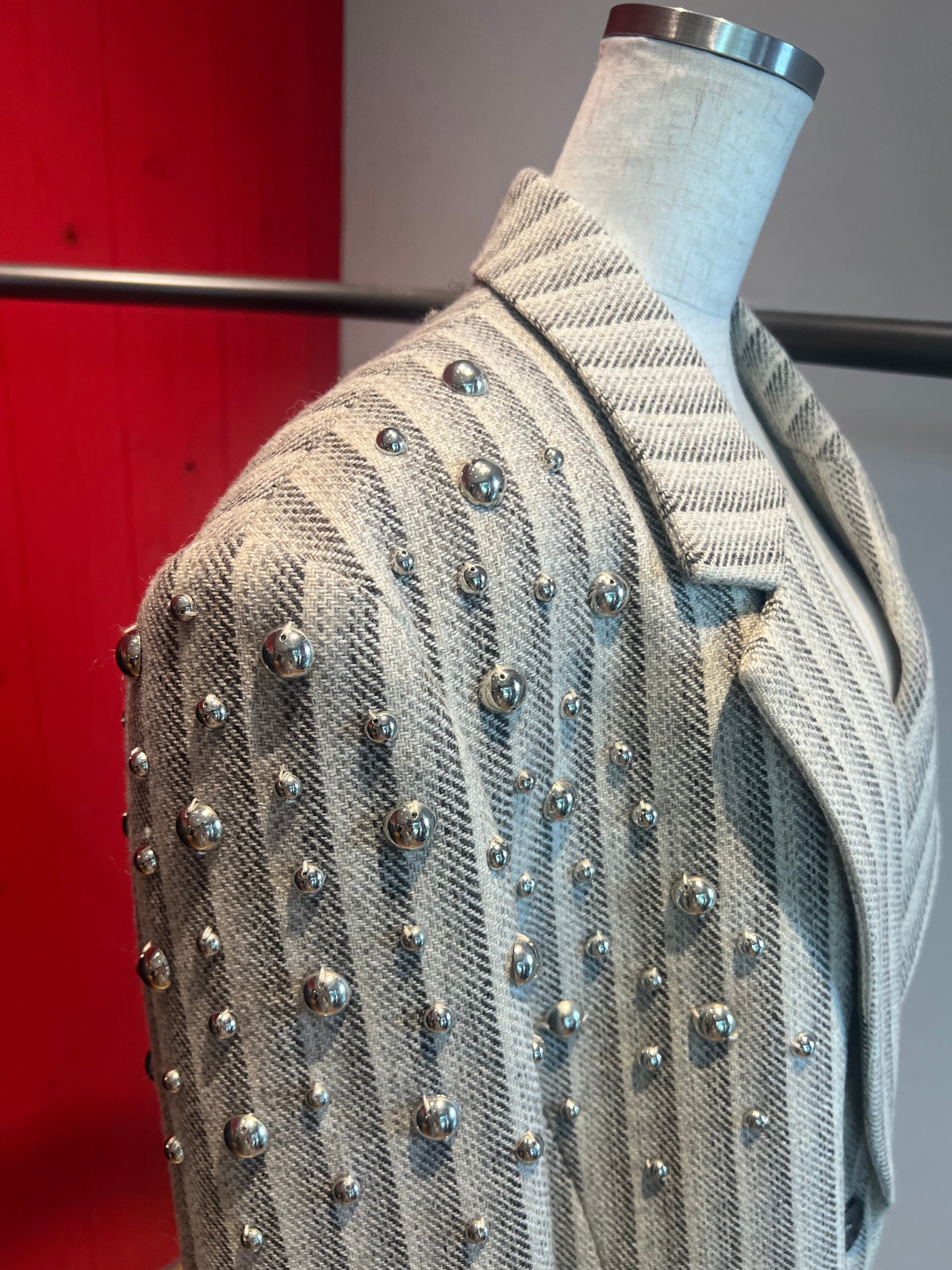 【OUTLET】スタッズdesignストライプツイードテーラードJK