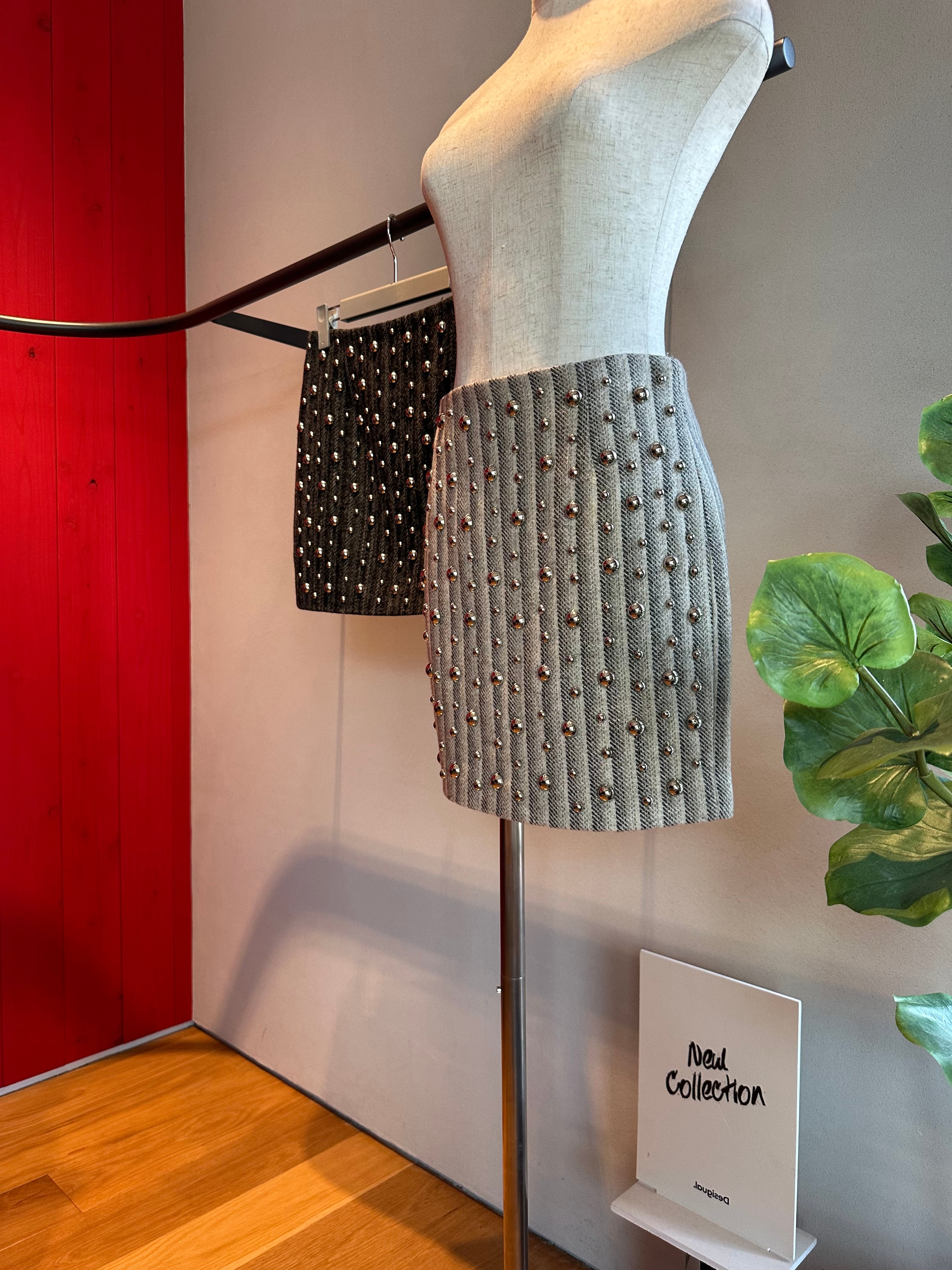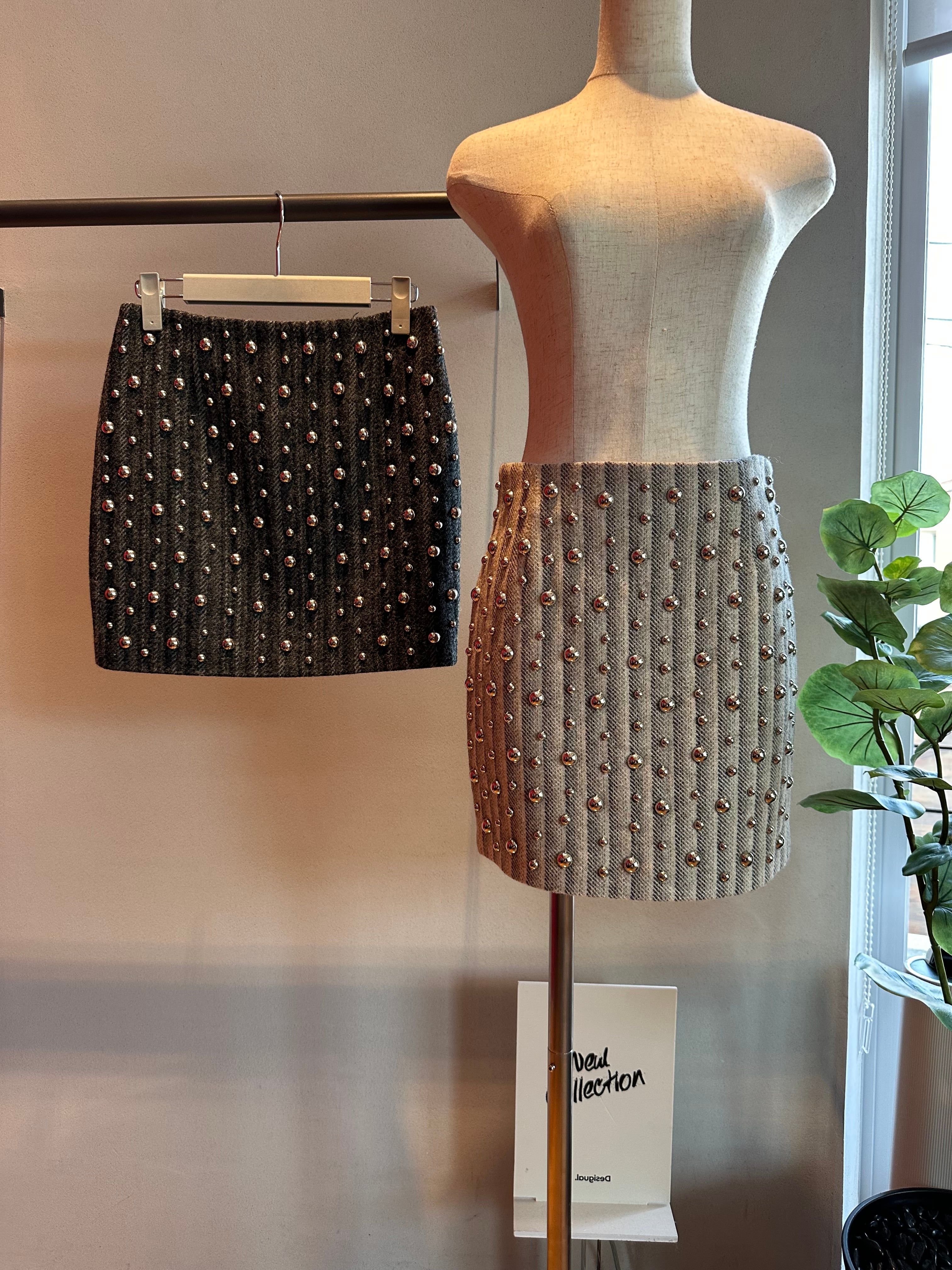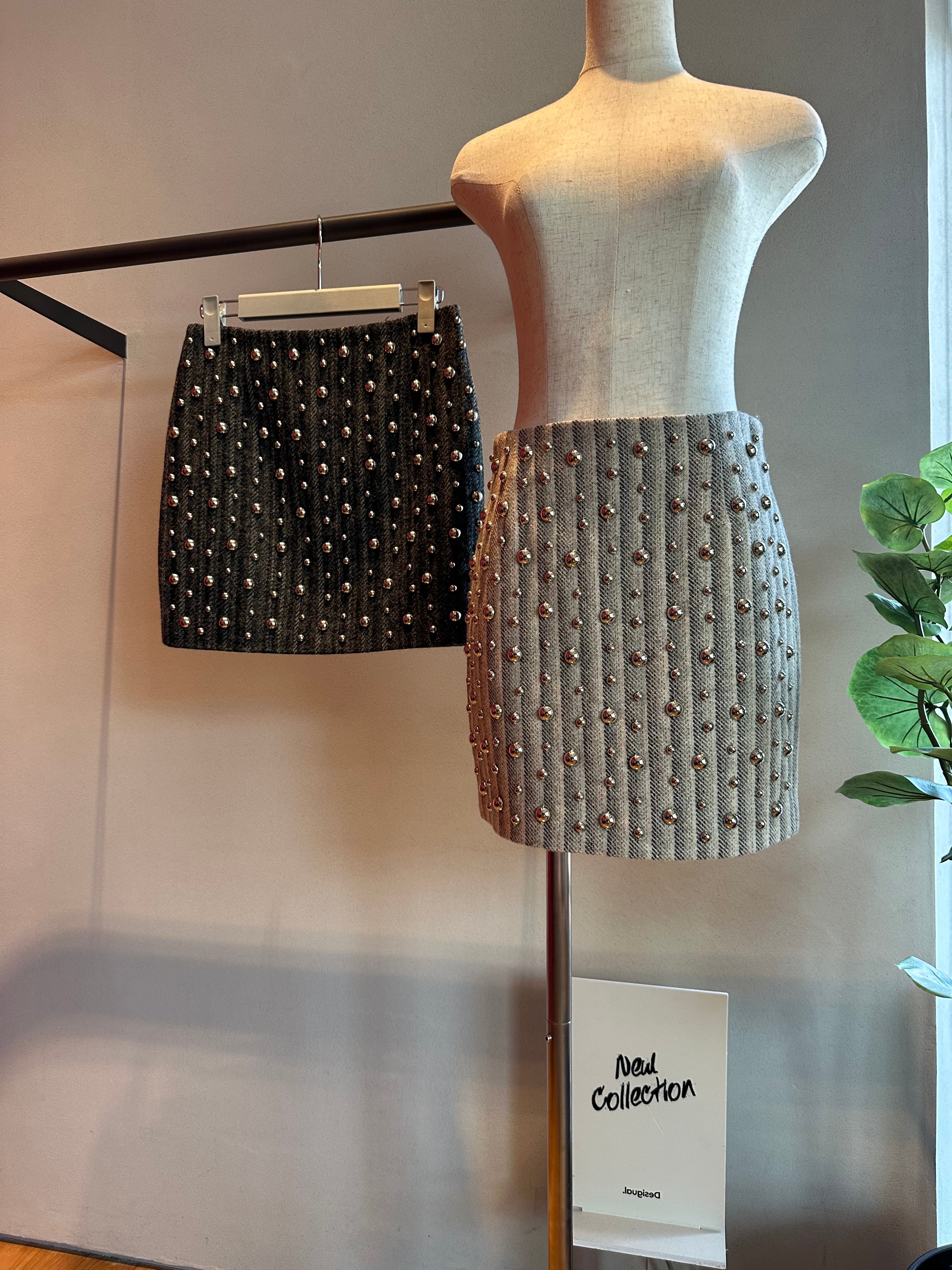 【OUTLET】ウールツイードスタッズデザインミニスカート