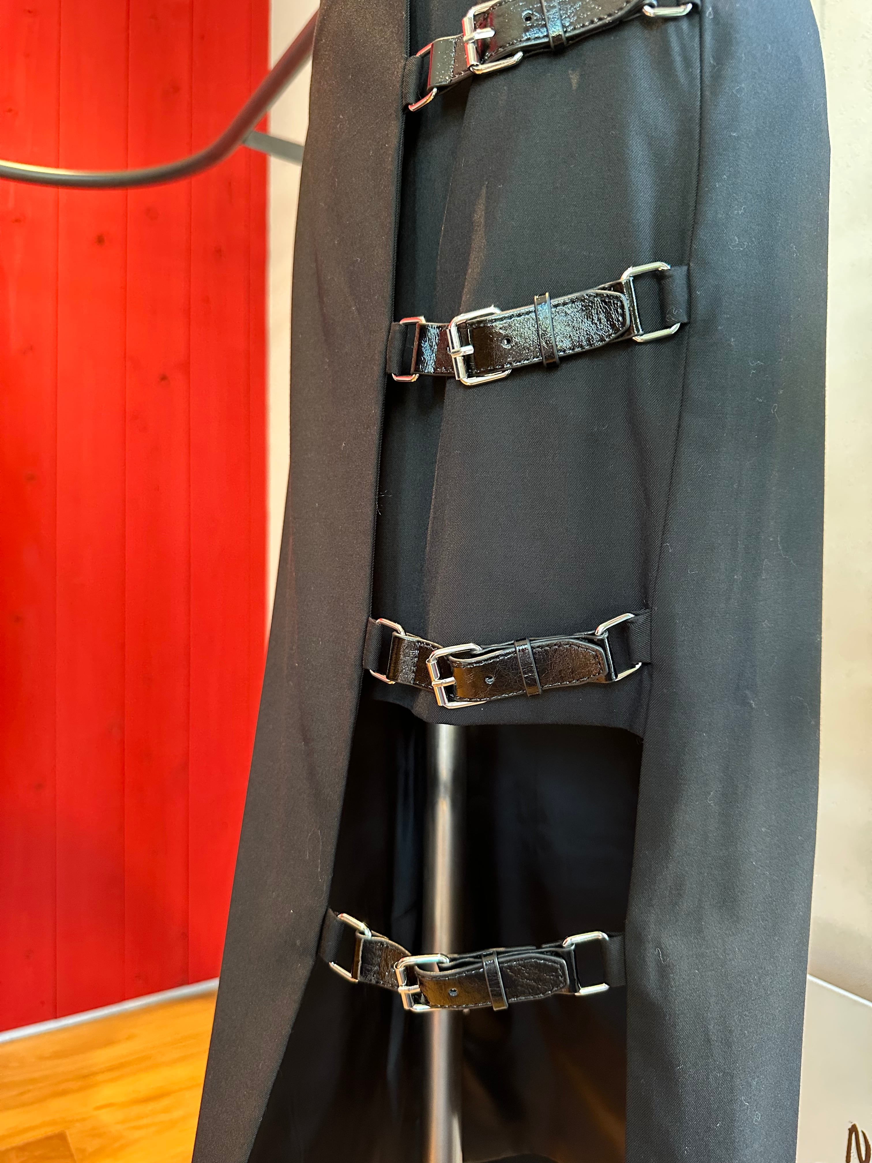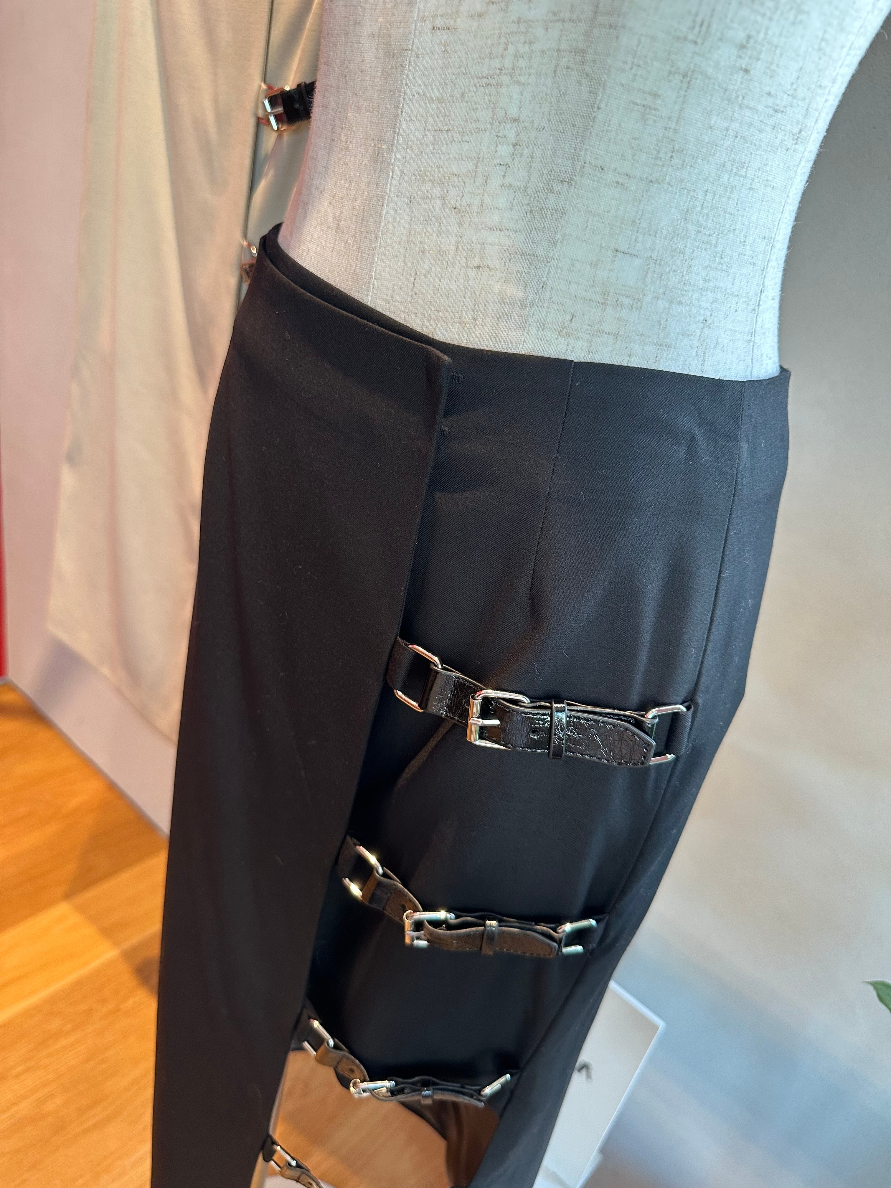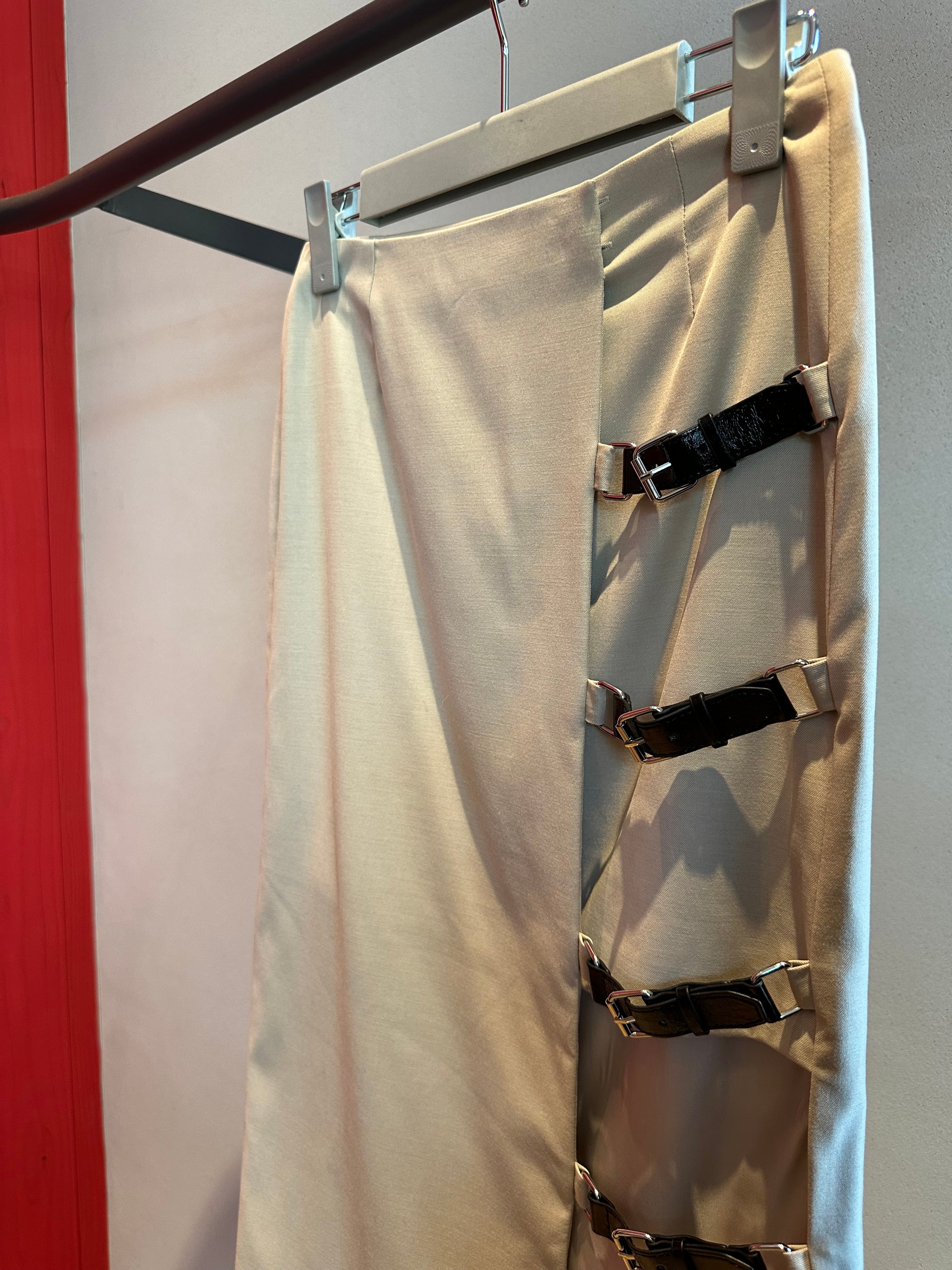 【OUTLET】ウール混サイドレザーベルトデザインミディー丈SK