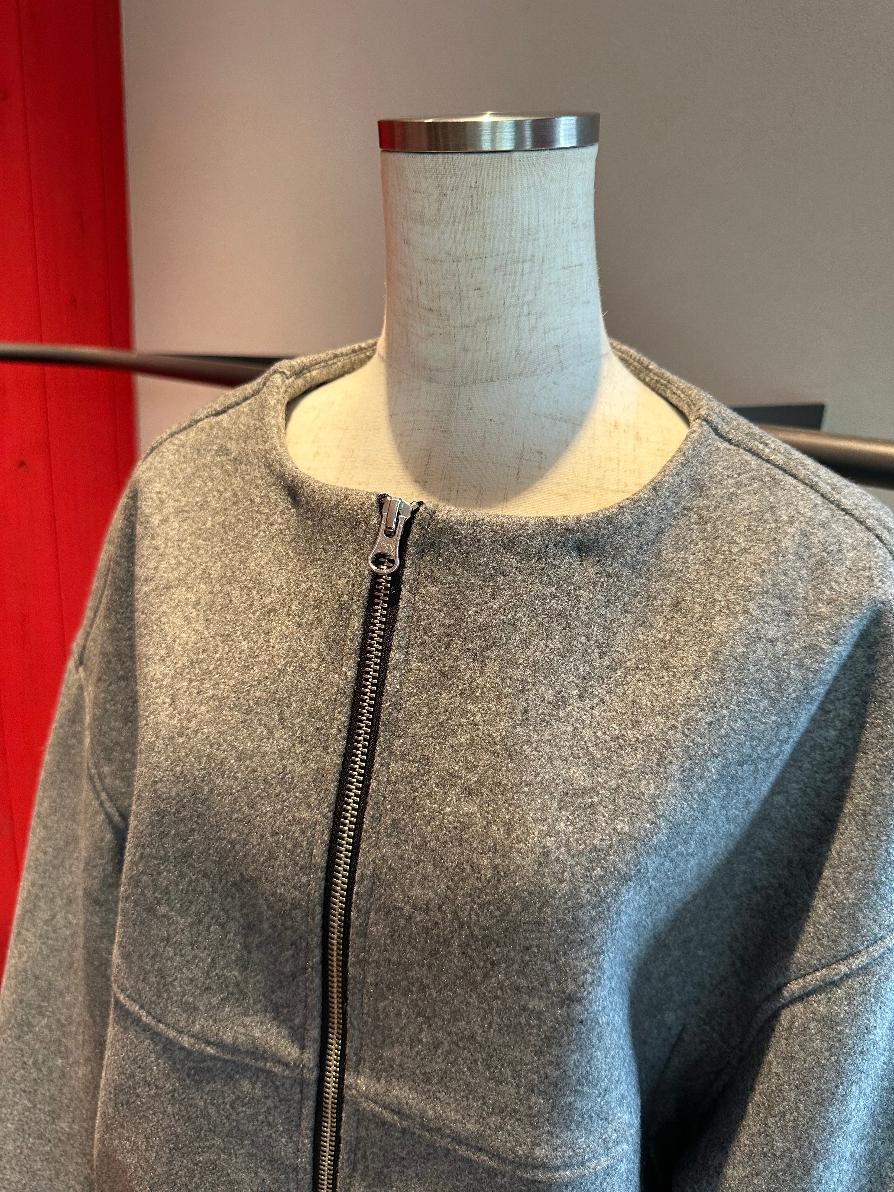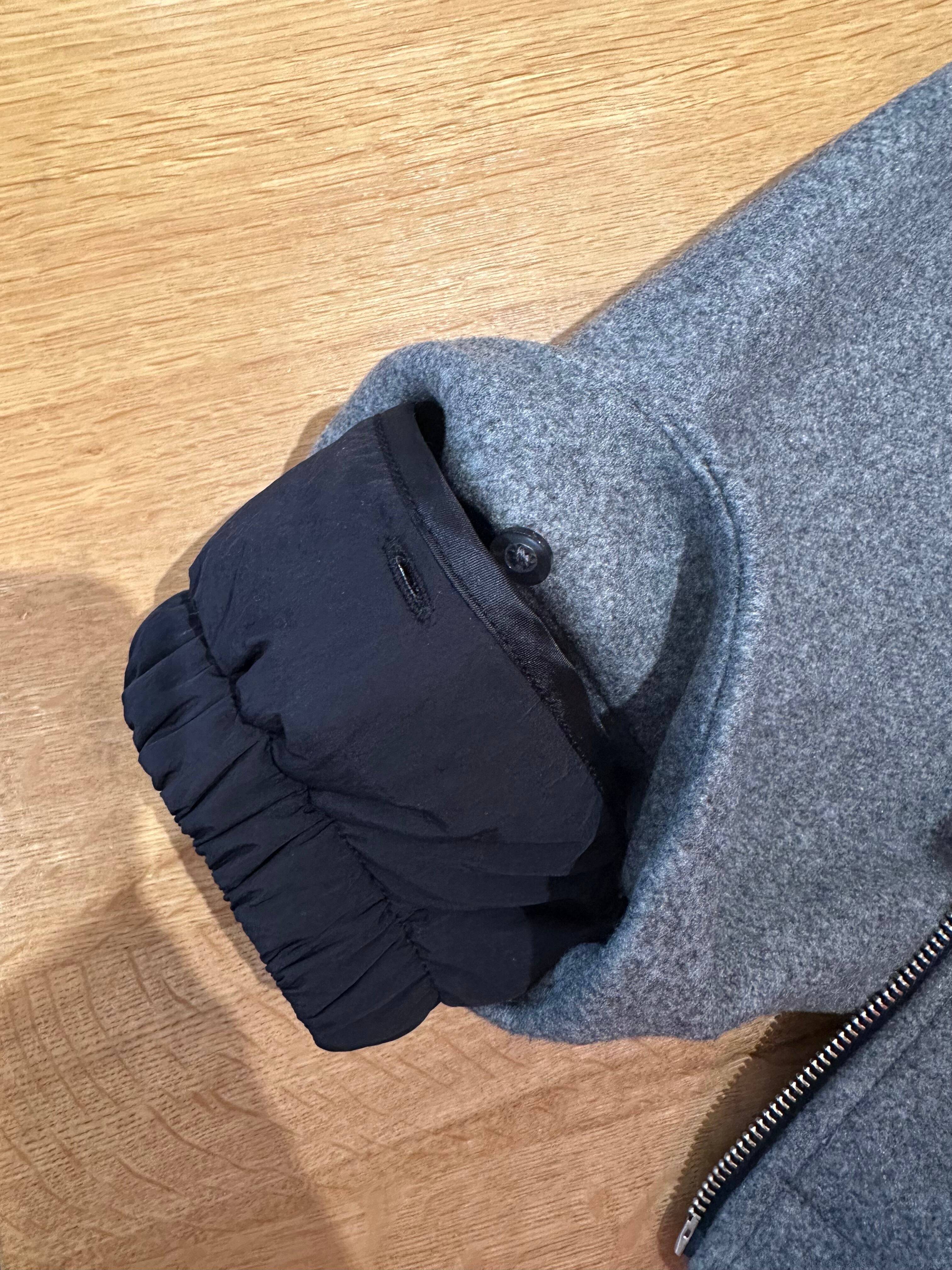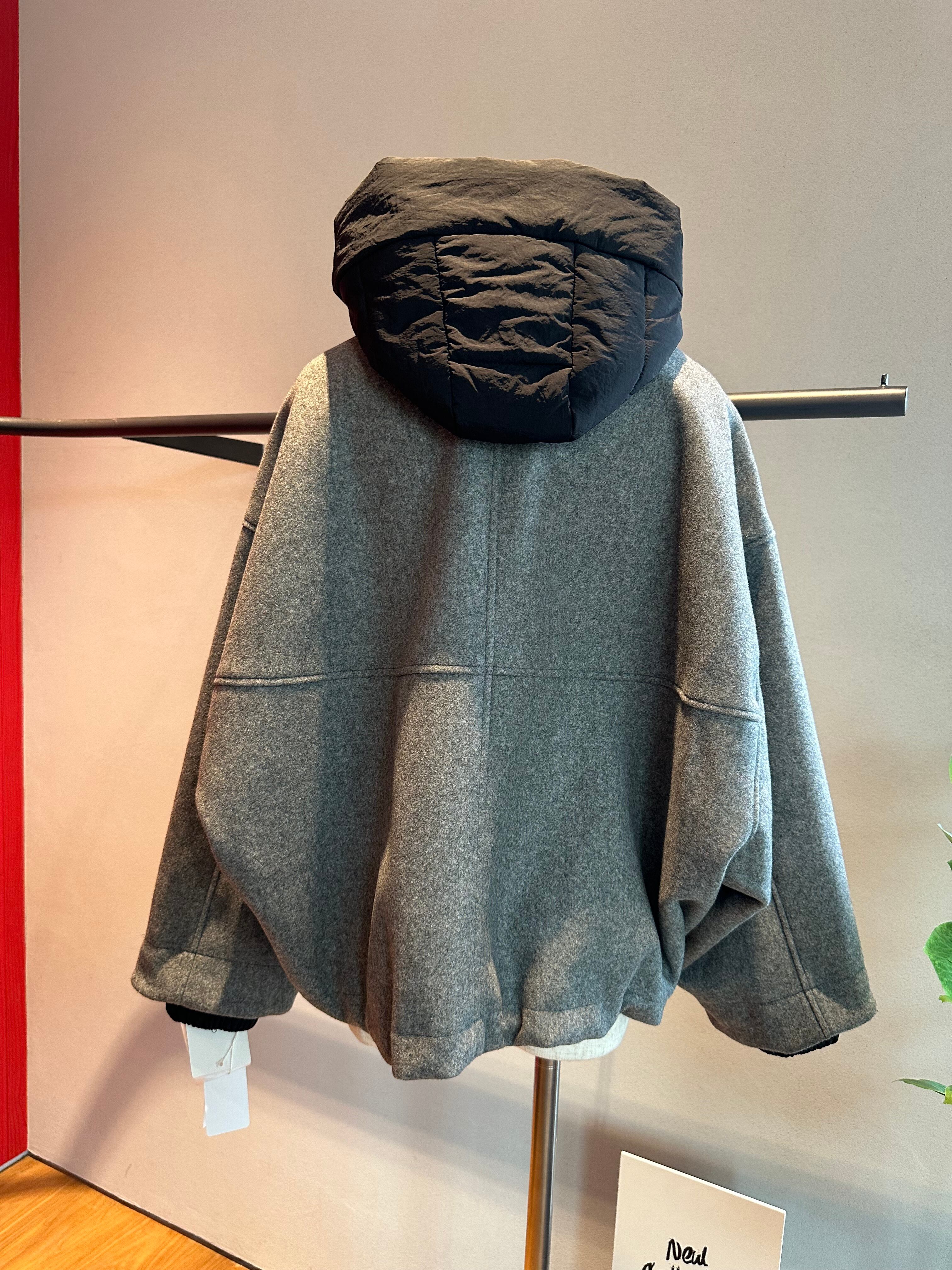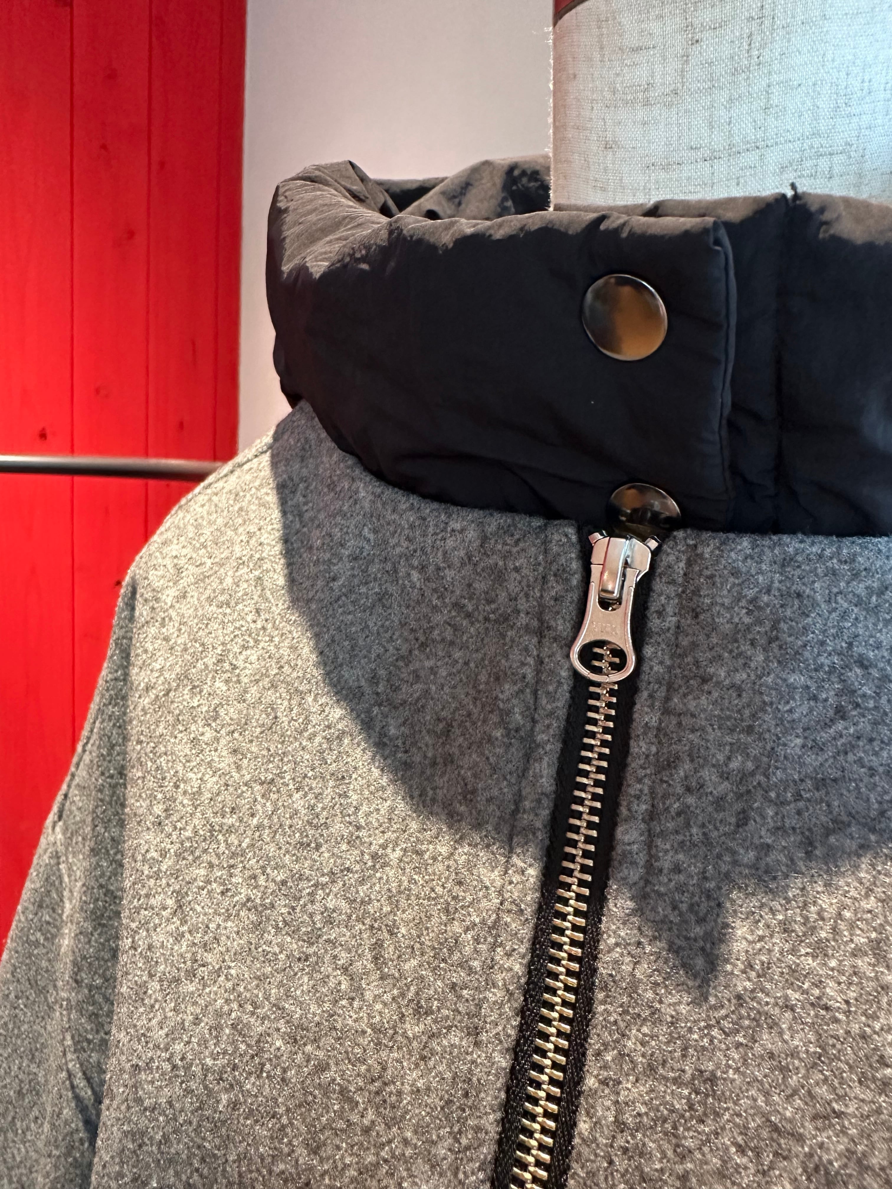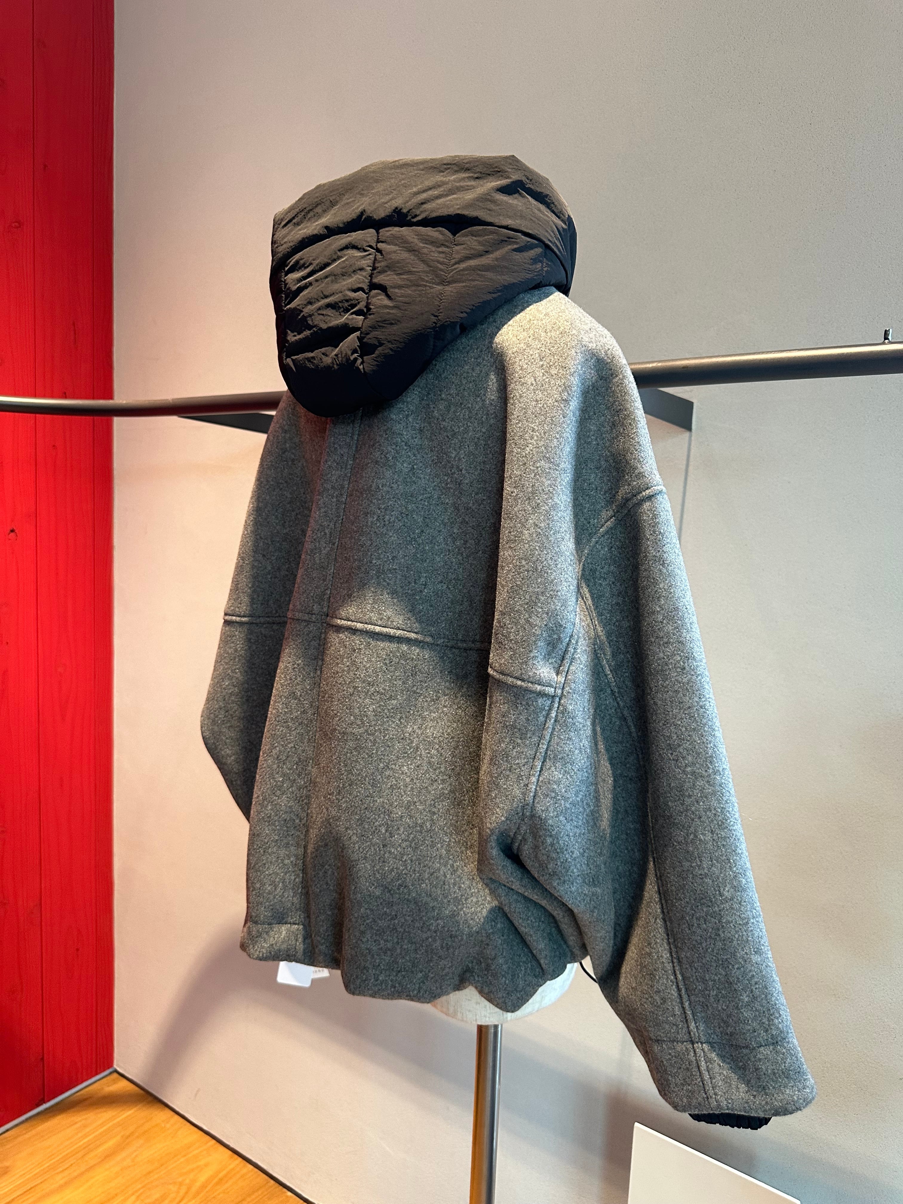 タフタフード袖取り外し裾ドロストノーカラーZIPメルトンブルゾン