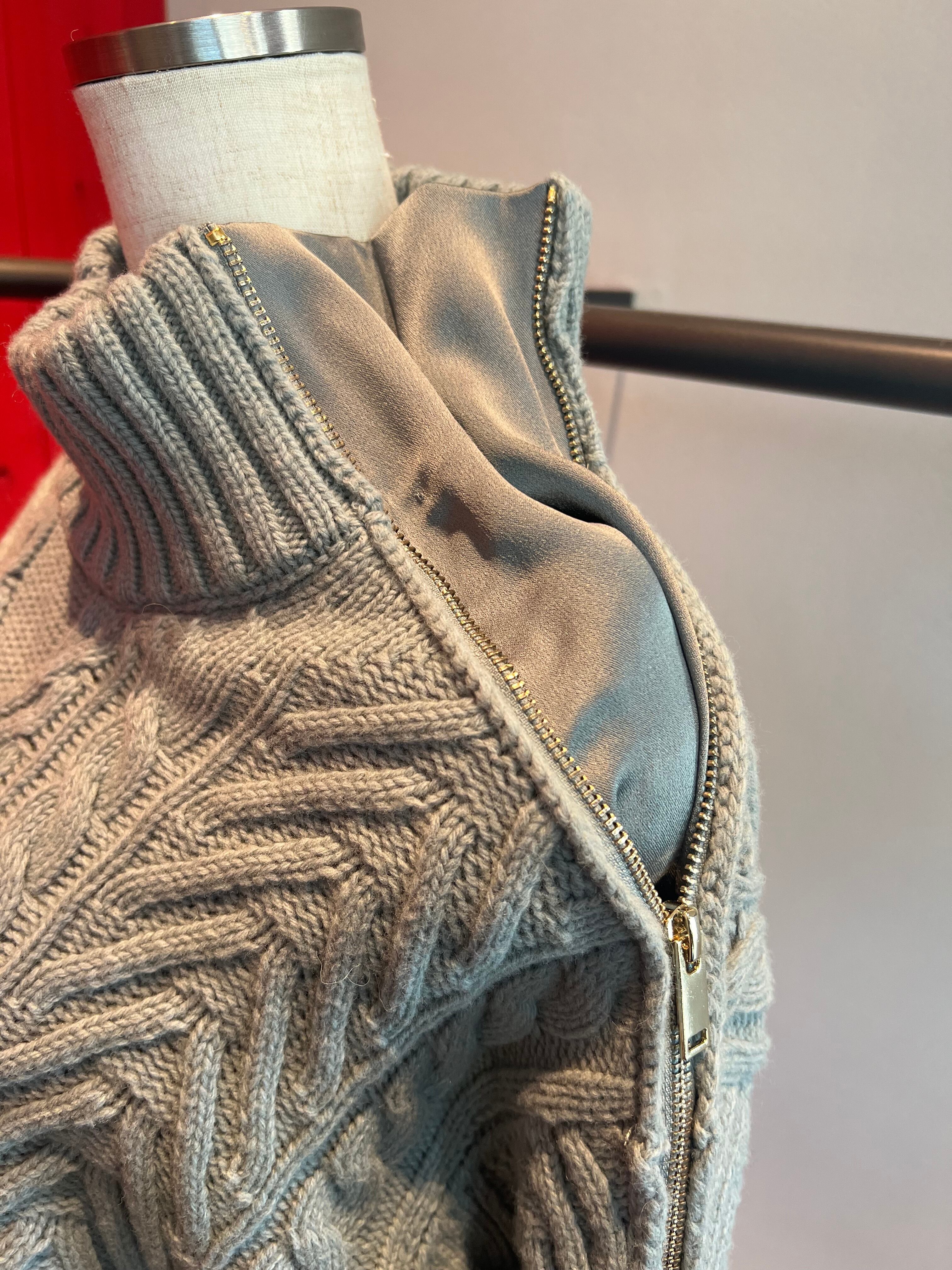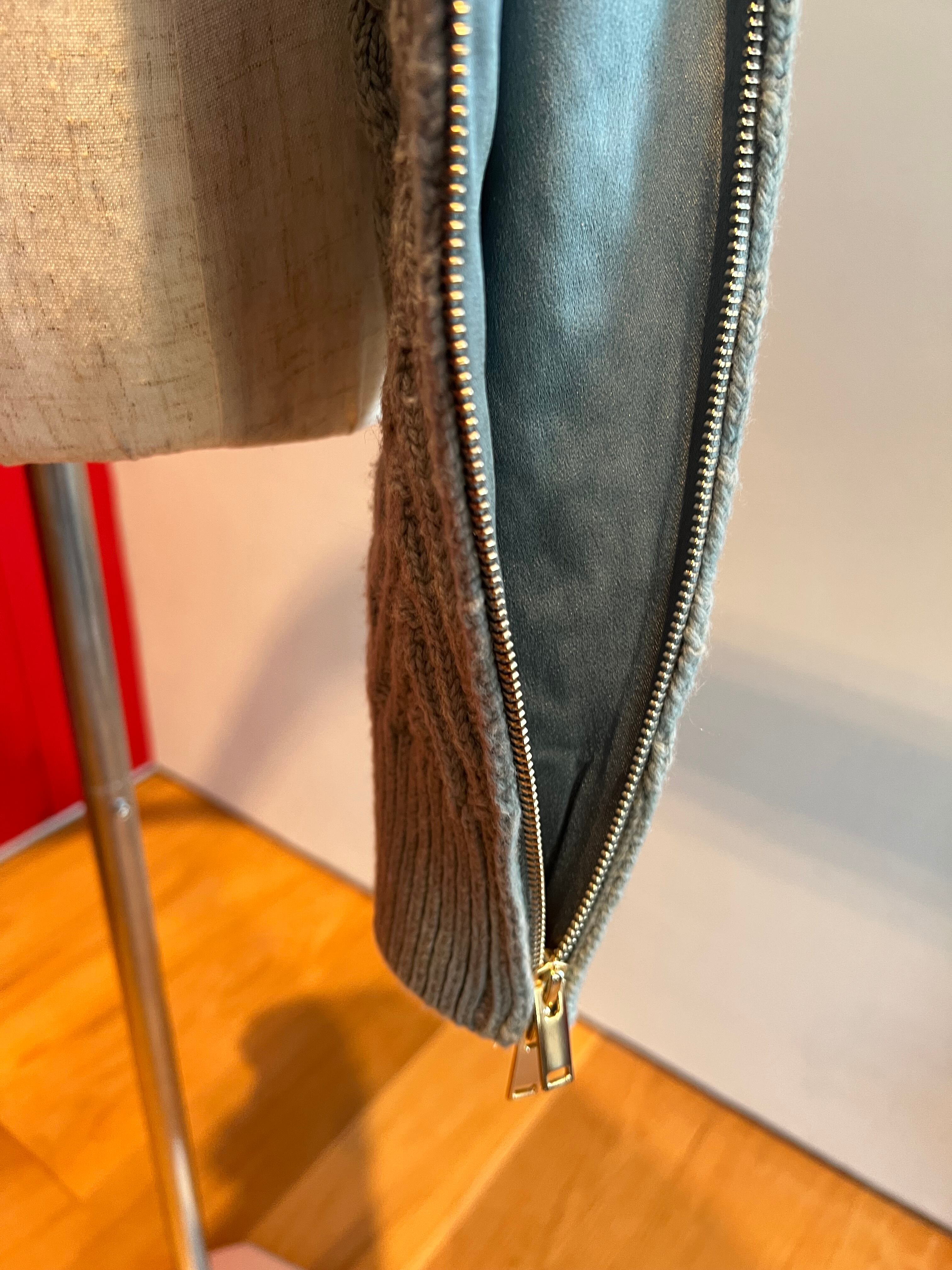(首から袖のファスナー部分はサテン生地使用デザインとなります。ZIPデザインは左側のみで、右側はファスナーデザイン無しです。)
