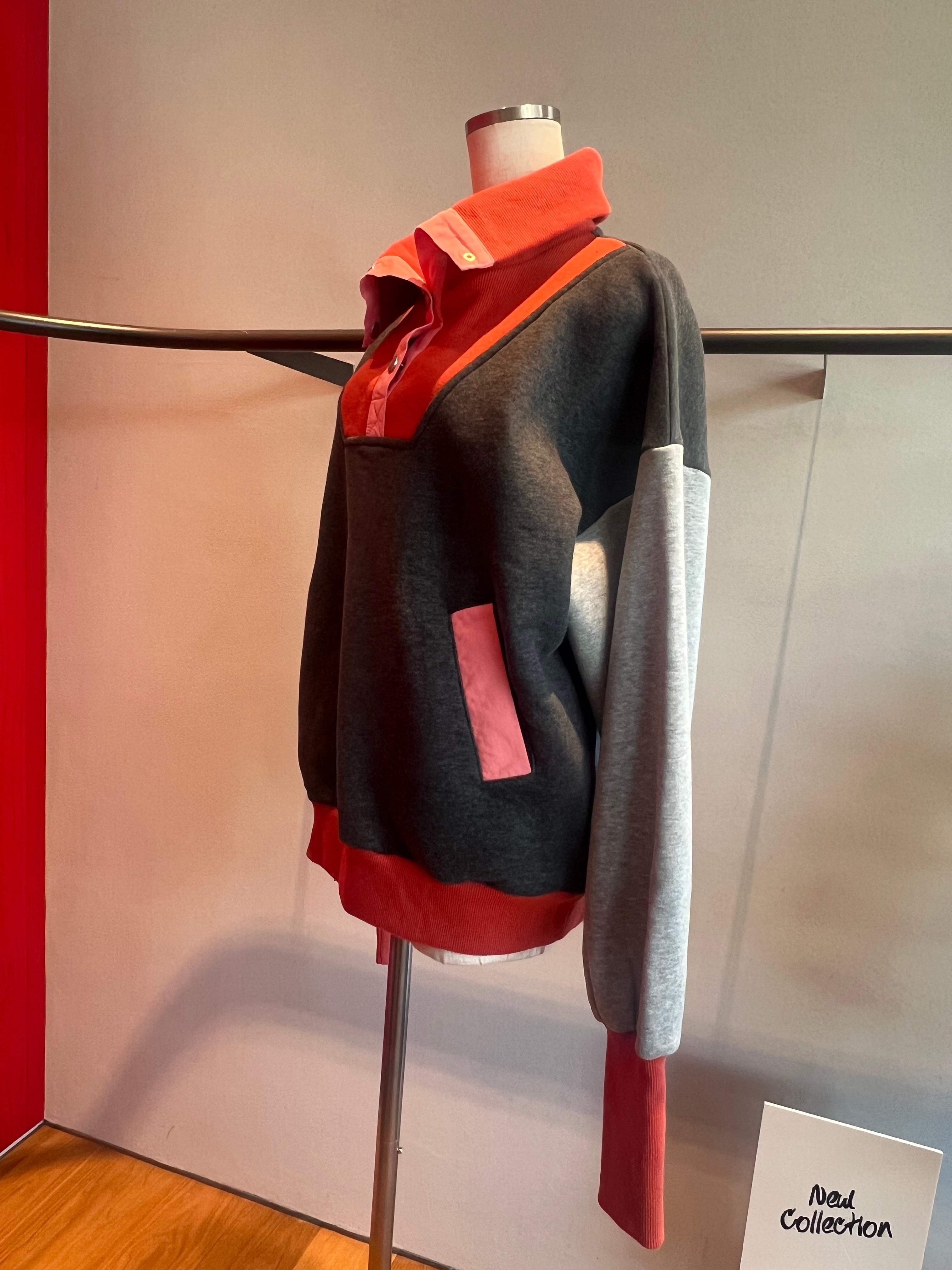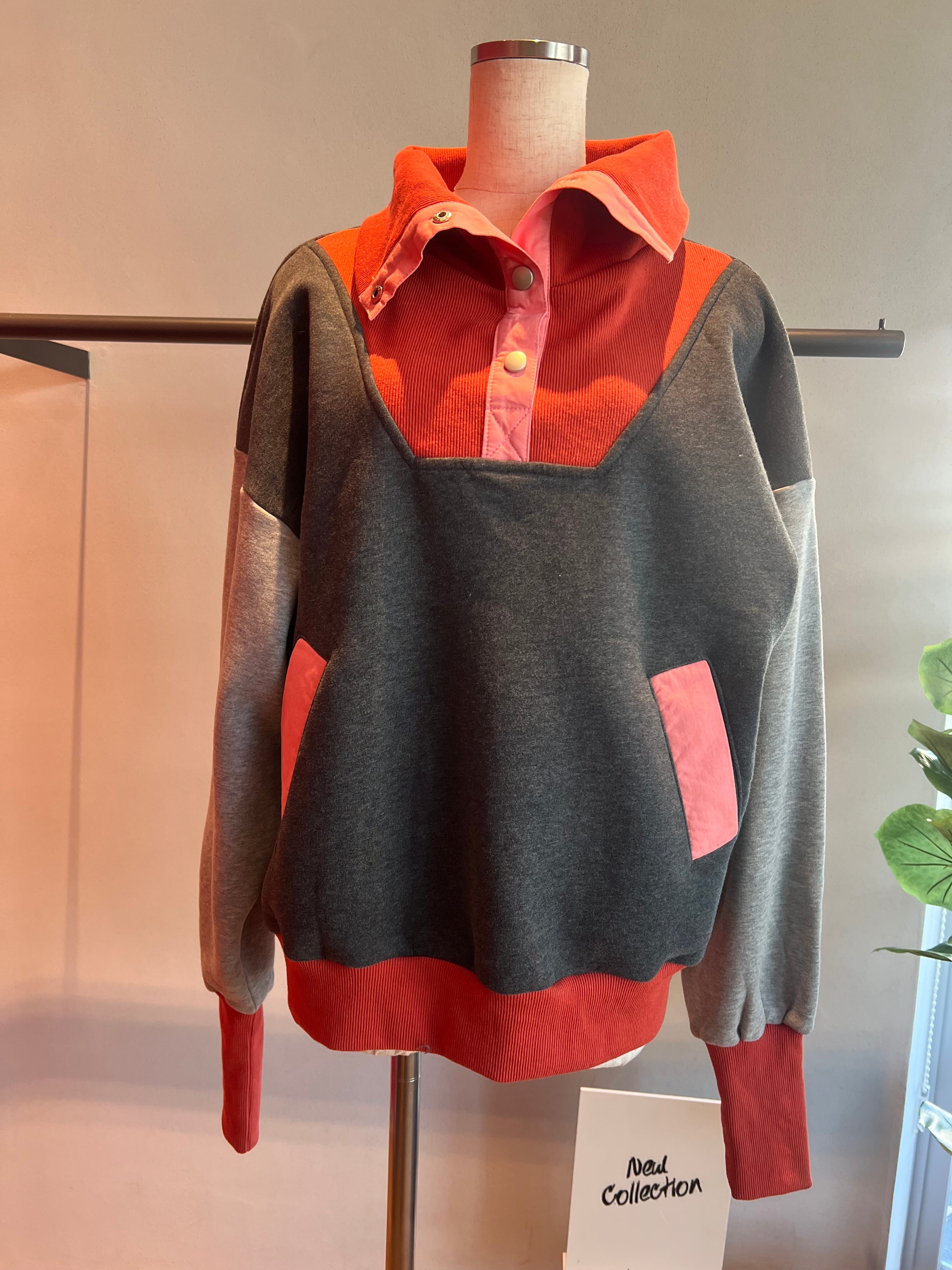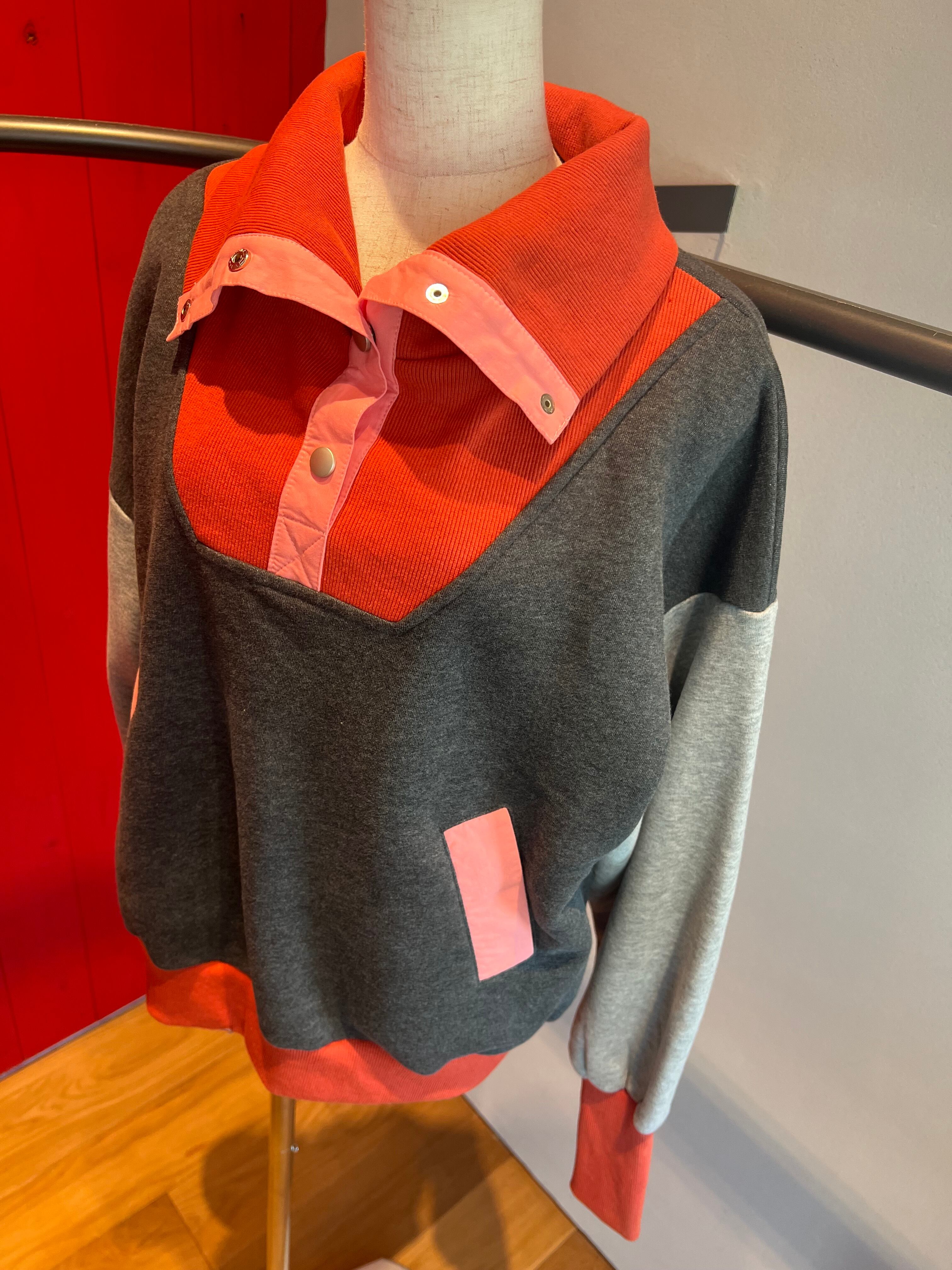スナップハイネック配色切替裏起毛トレーナー