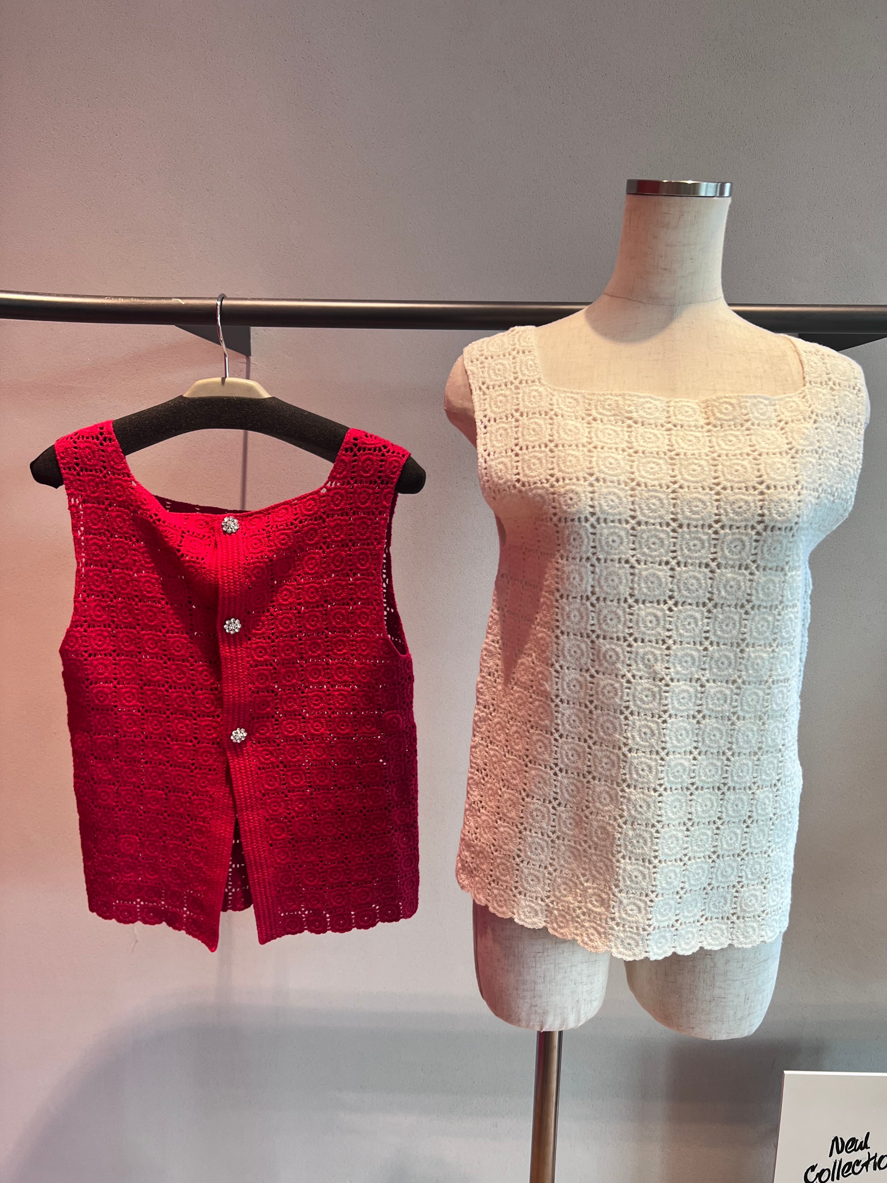 【OUTLET】コットンモチーフ編ニットスクエアタンクトップ