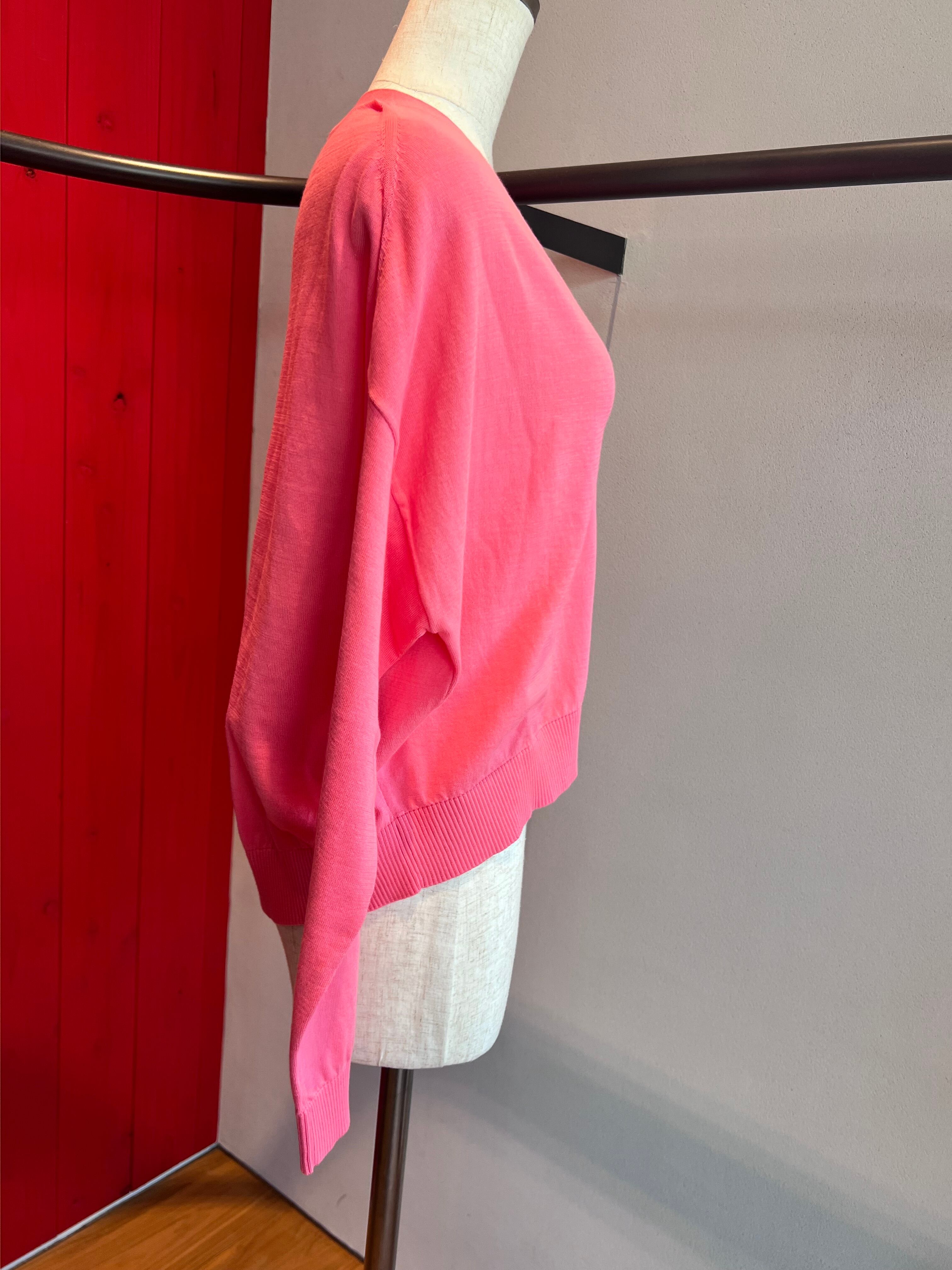 【OUTLET】ハイゲージ裾ロゴ刺繍Vカーディガン