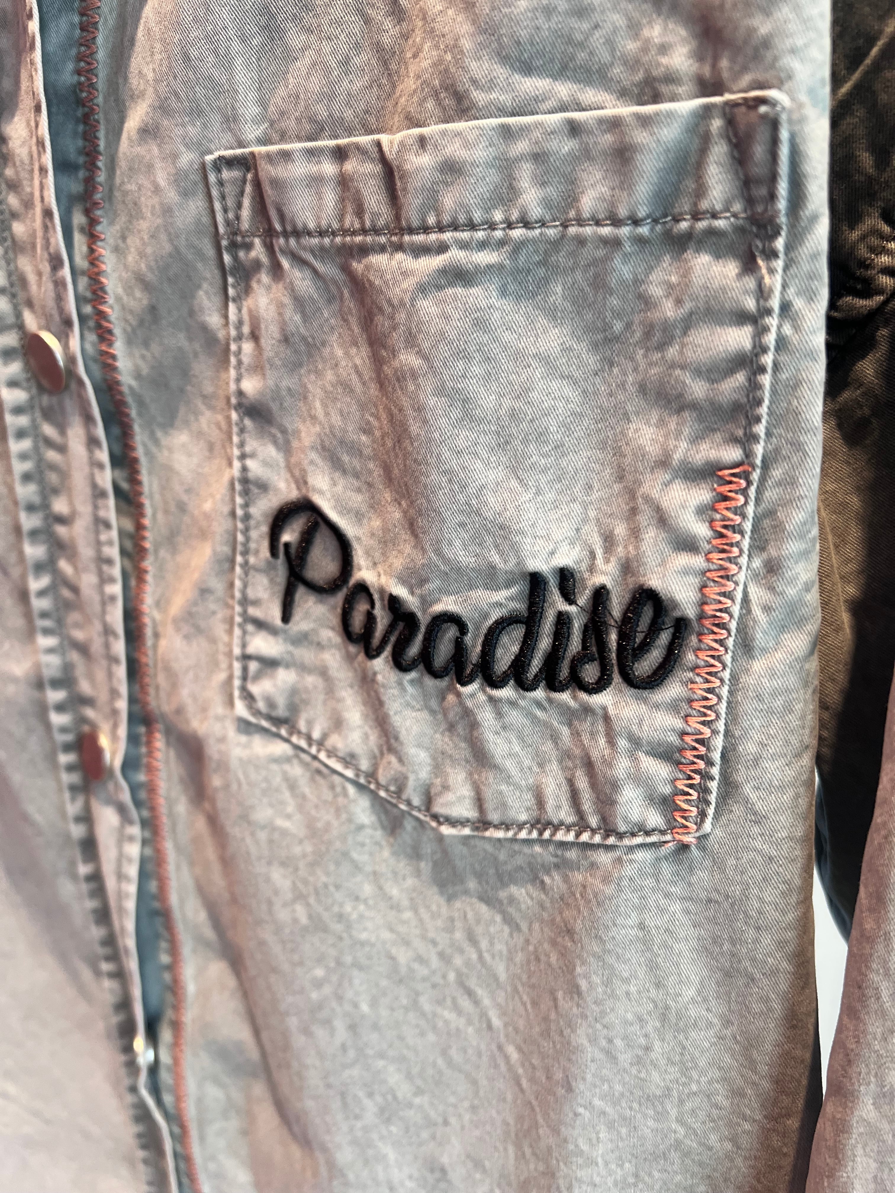 ムラ染め胸刺繍ステッチシャツJK