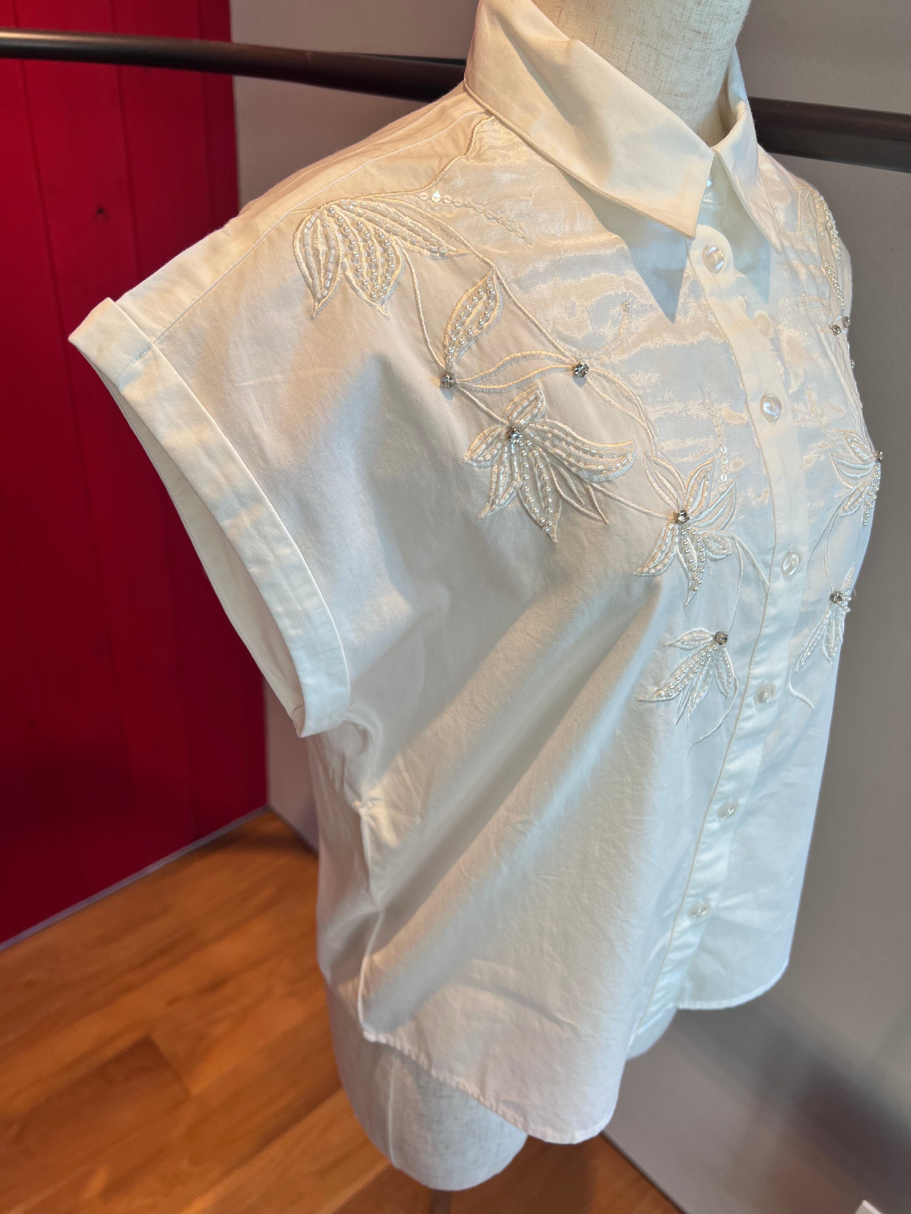 ビジュー刺繍ポイントフレンチシャツ