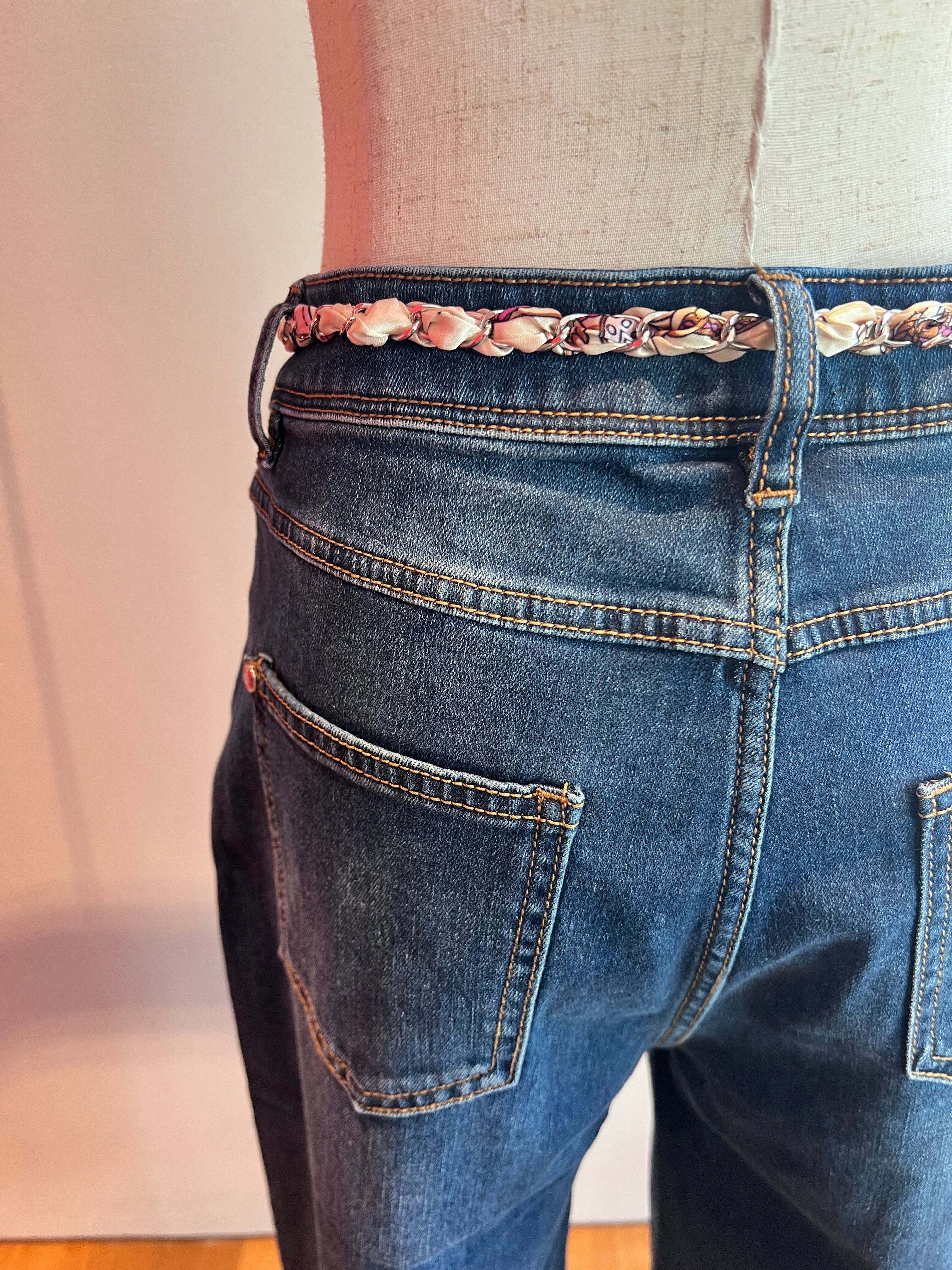 スカーフベルト付カラー切替ストレートデニム