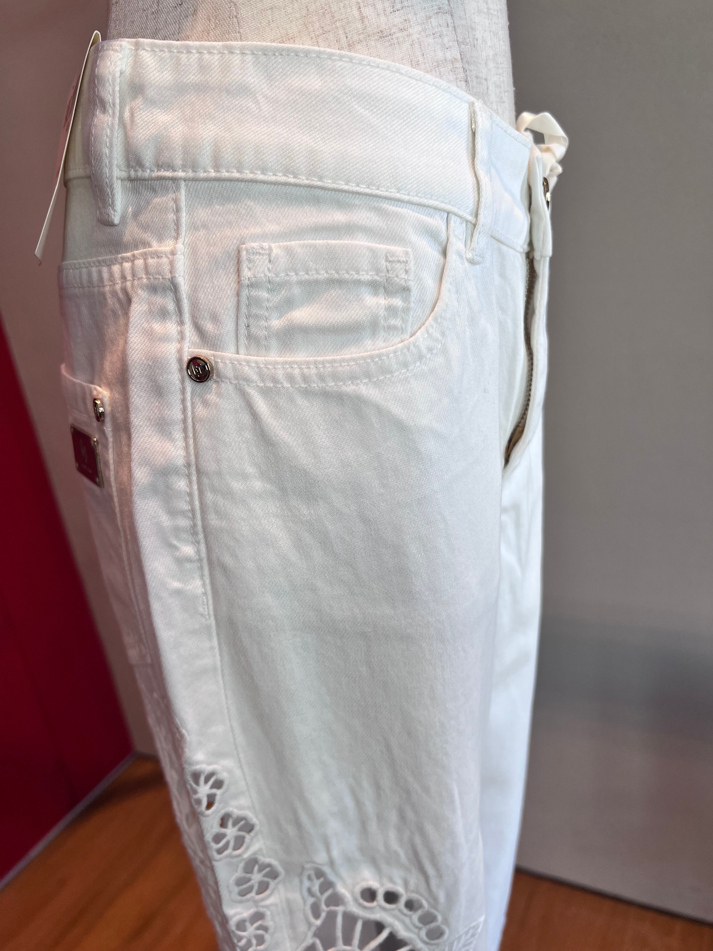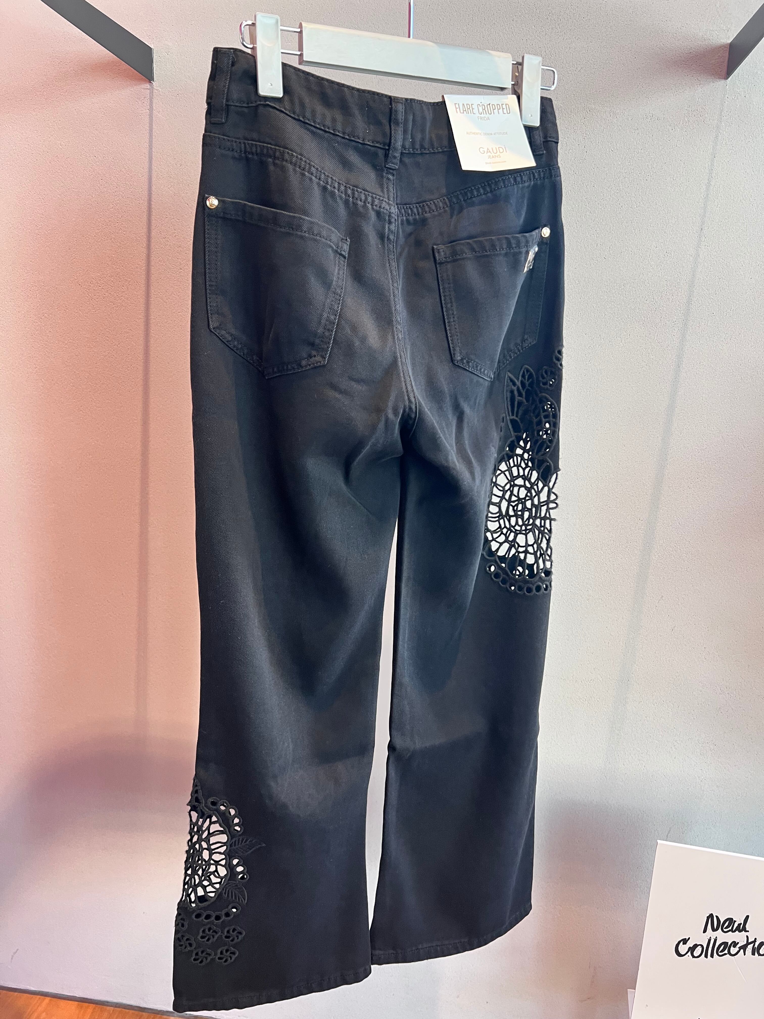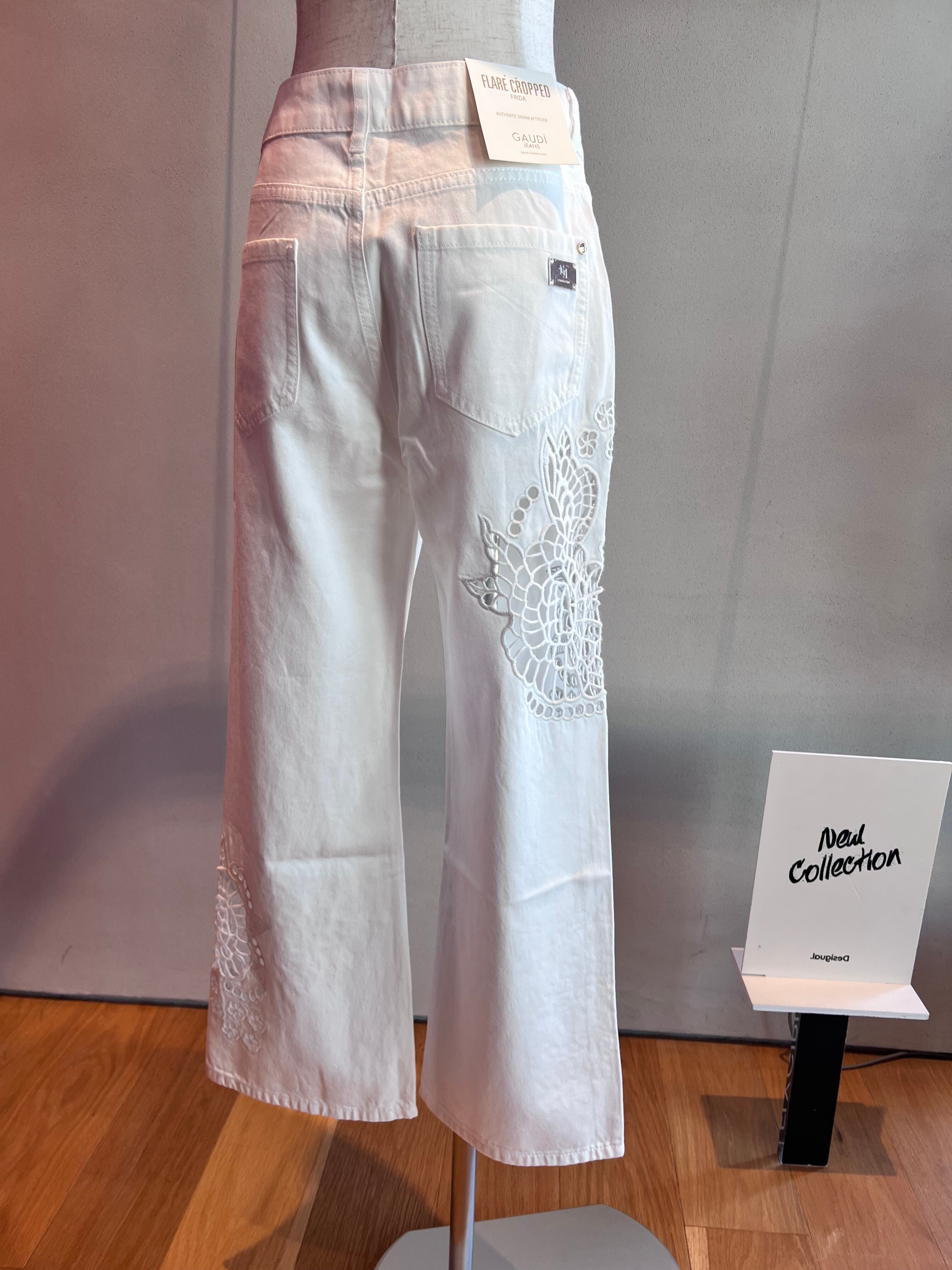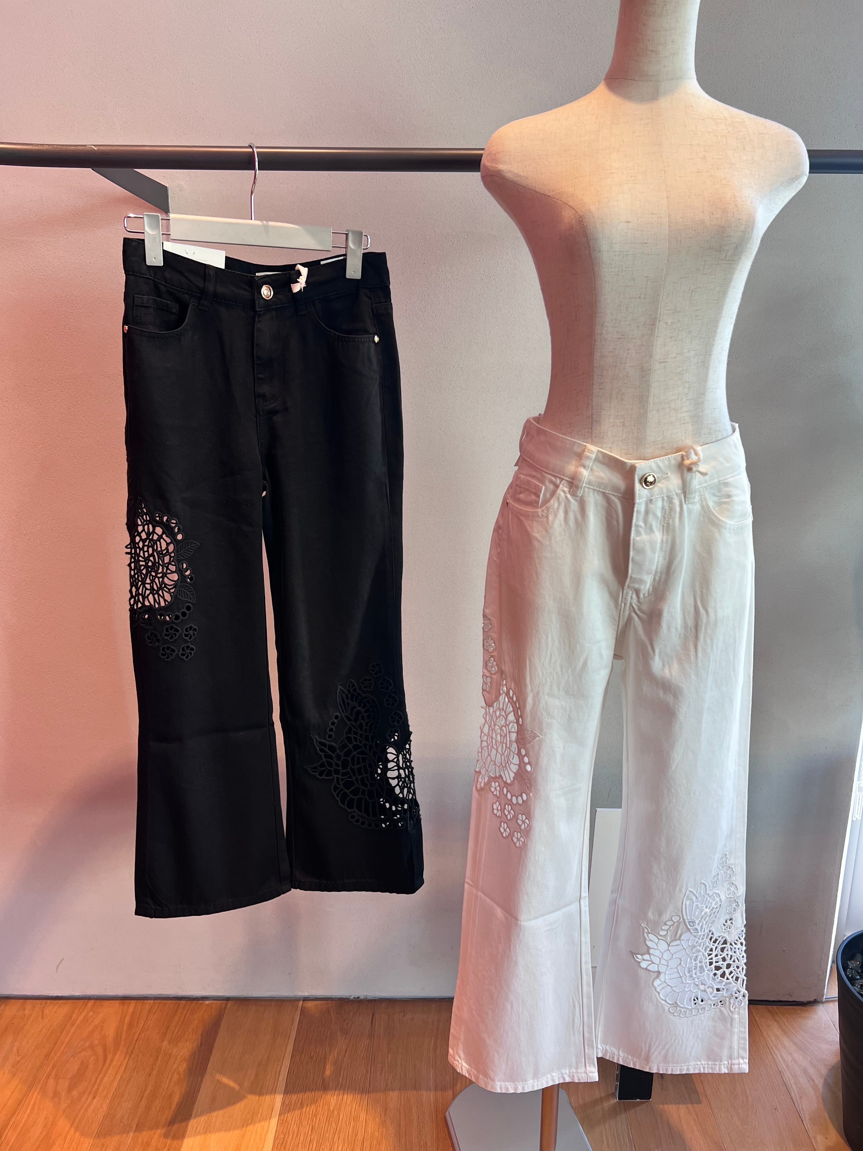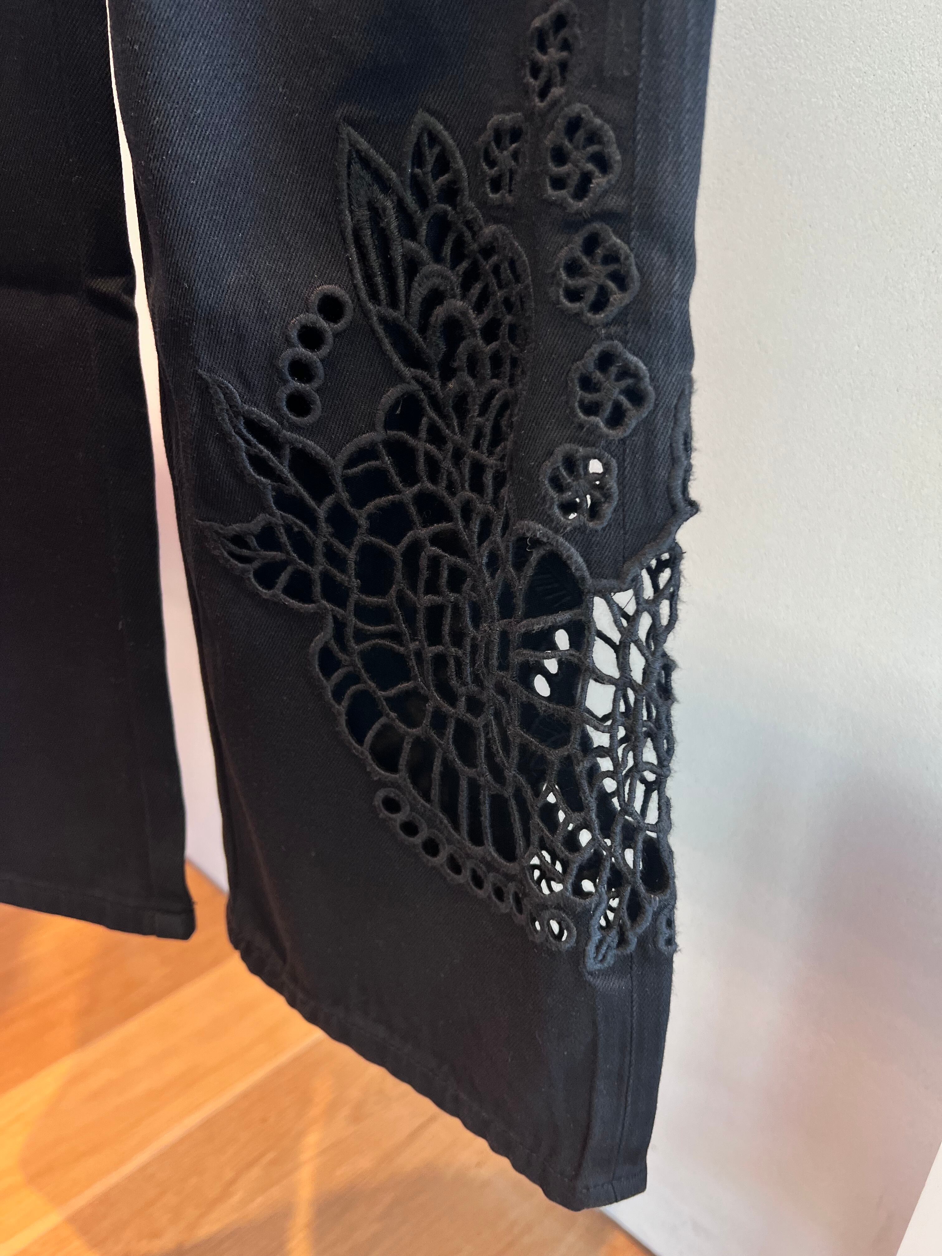 カットワーク刺繍クロップドカプリフレアパンツ