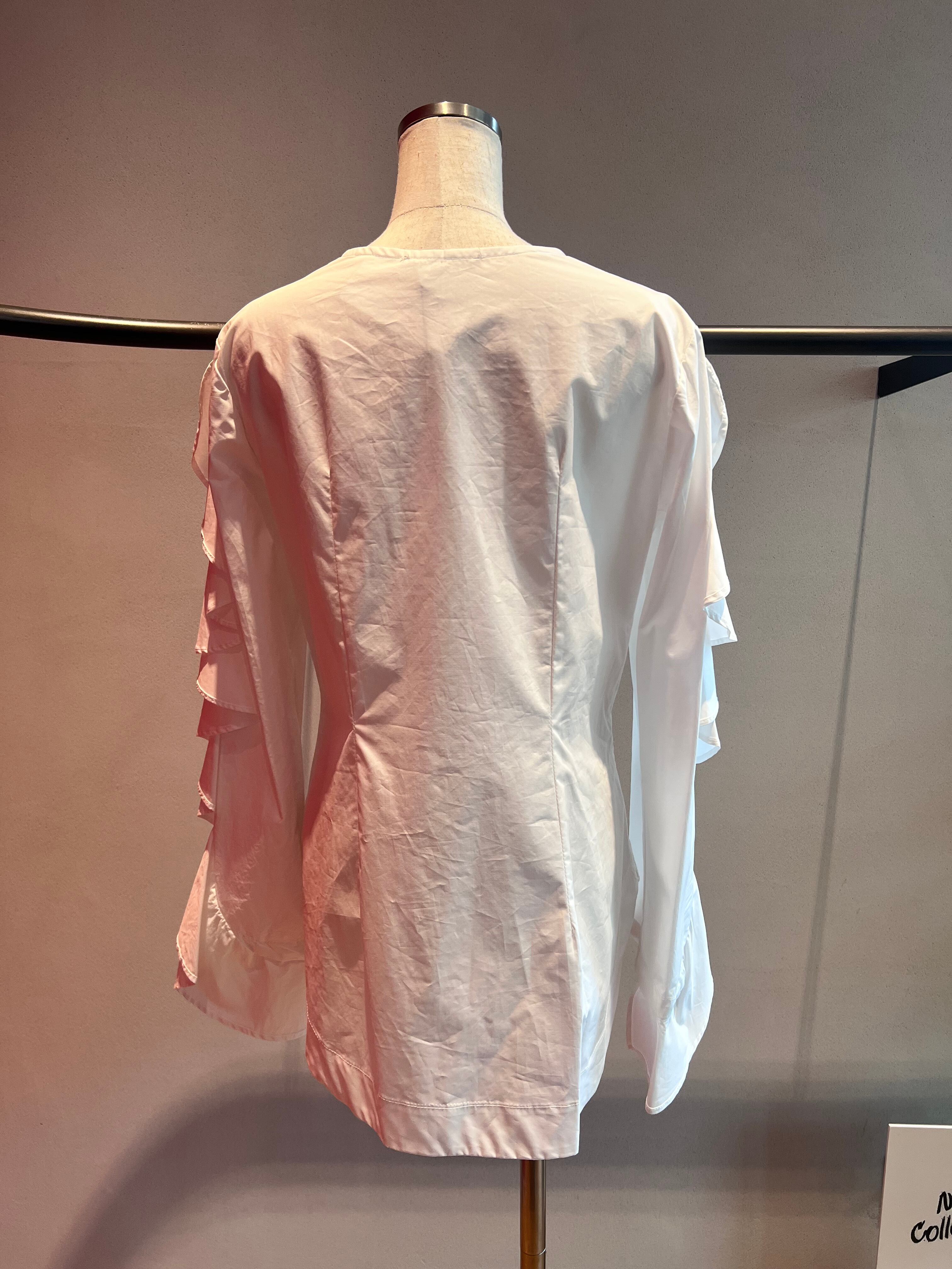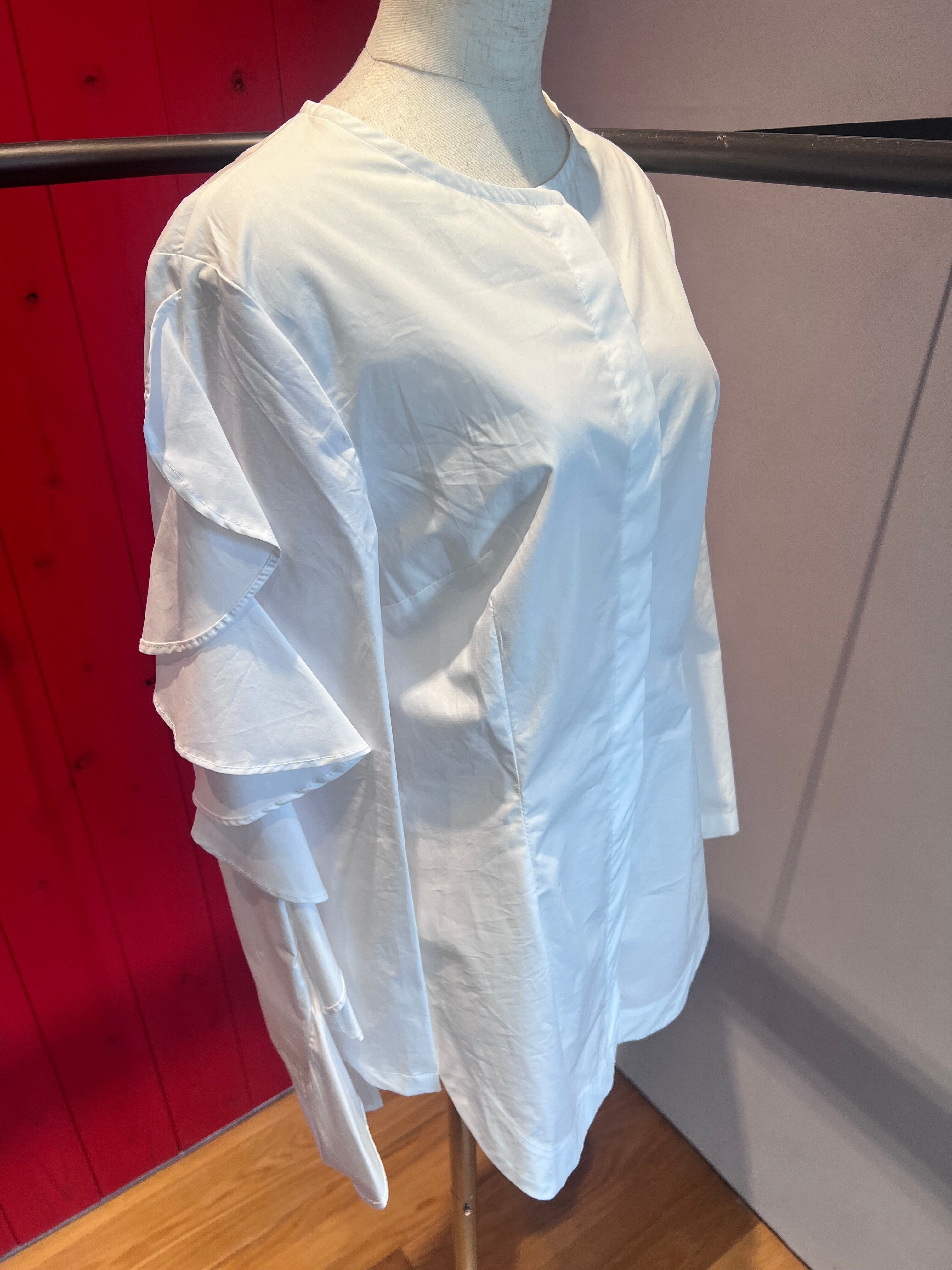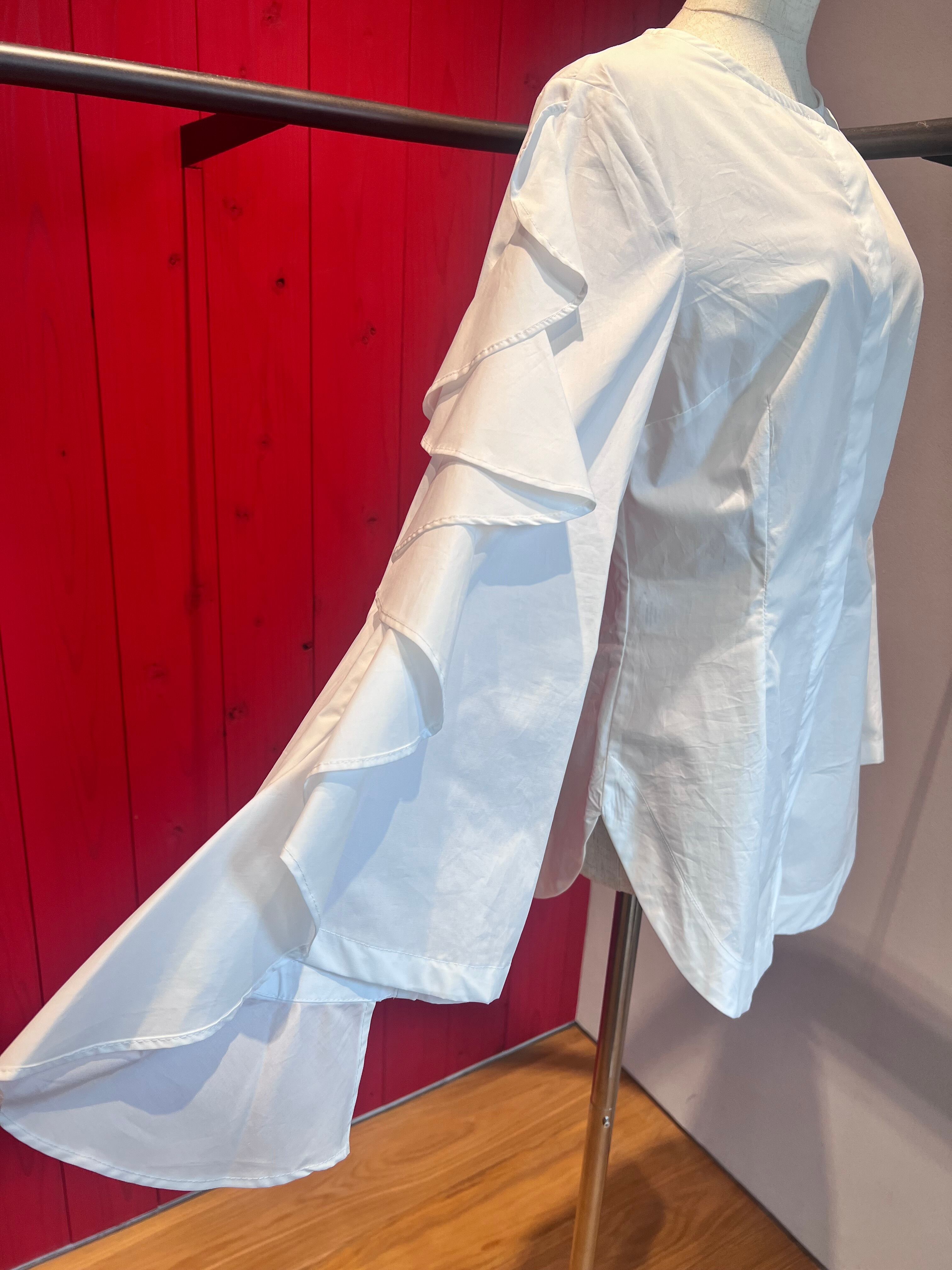 【OUTLET】ラッフルフリル長袖ノーカラークルーブラウス